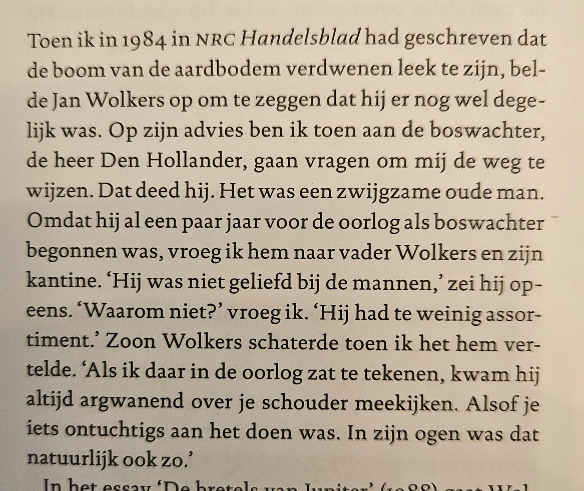 In de oorlogsjaren kwam Wolkers vaak op het landgoed. Hij zat er te tekenen, maar nam ook geregeld zijn vriendinnetjes mee het bos in. Volgens Wolkers werd hij toen scherp in de gaten gehouden door Herman den Hollander. Handgraaf vertelt dat zijn oudoom daar vaak schertsend over sprak: “Wolkers was altijd welkom, zolang hij zijn broek maar aanhield.”