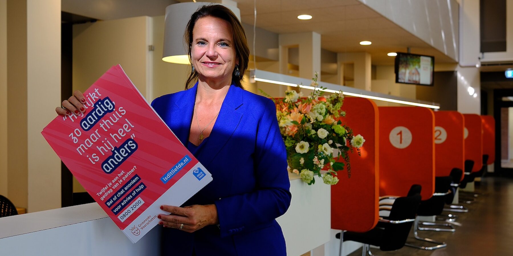 Burgemeester Nadine Stemerdink: “Veel vrouwen zwijgen te lang. Het is belangrijk te weten dat het niet jouw schuld is en dat er hulp klaarstaat. Daarom hangen we posters op en besteden we aandacht via sociale media. Ik roep scholen, sportclubs en huisartsen op om mee te doen.”