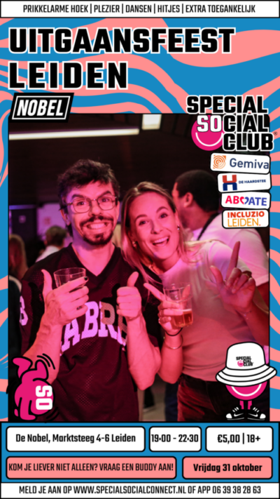 De Special Social Club Leiden vindt plaats op vrijdag 31 oktober in poppodium Nobel, van 19.00 tot 22.30 uur. Kaarten zijn te koop via de website.