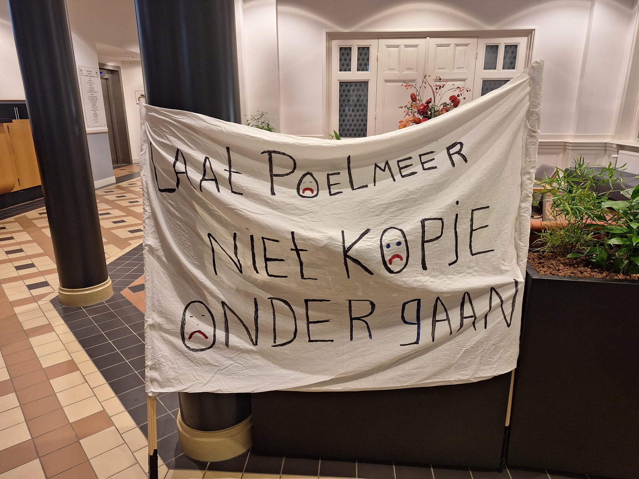 Uiteraard zijn er ook fervente bezoekers van het huidige Poelmeer in het gemeentehuis te vinden, die opkwamen voor hun zwemlocatie. Bij de ingang van het gemeentehuis stond een spandoek met de tekst ‘Laat Poelmeer niet kopje onder gaan’.