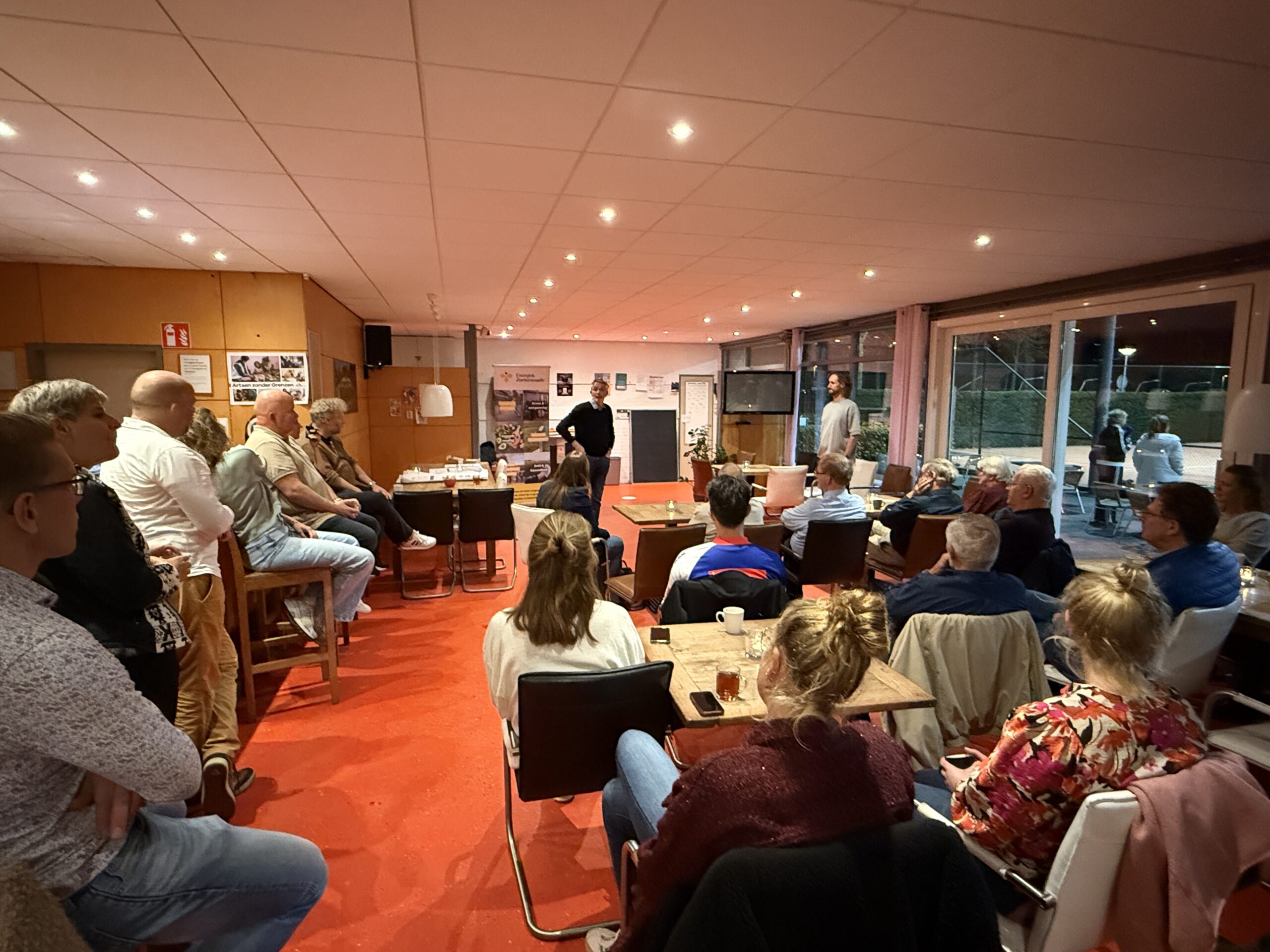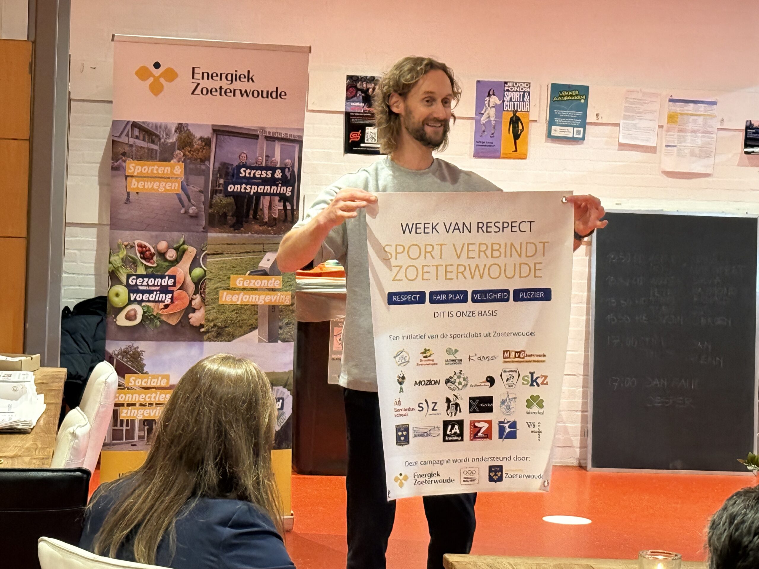 Jorrit Smit (Energiek Zoeterwoude) is de organisator van de avond. “Samen met ZTPC leek het ons goed om de schouders er met elkaar onder te zetten. Dat doen we met deze bijeenkomst, maar ook met een postercampagne die komende week overal komen te hangen”, vertelt Smit. Die posters, waarop ‘Samen verbindt Zoeterwoude’ te lezen is, zijn voorzien van een beschermlaag waardoor ze zowel binnen als buiten op de terreinen van de verenigingen opgehangen kunnen worden.