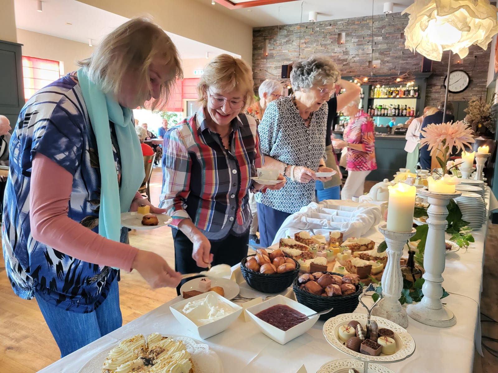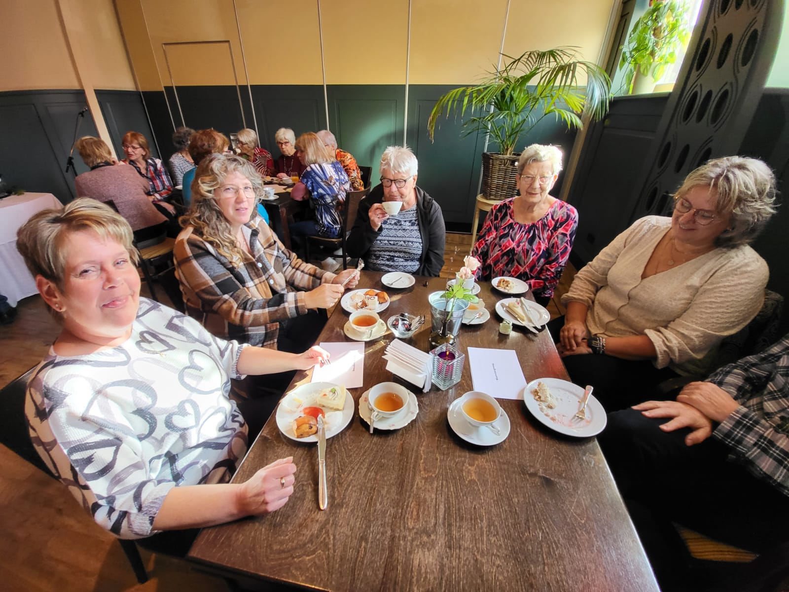 De high tea bestond uit twee rondes, een zoete en een hartige ronde. Zoals verwacht bij een high tea was er genoeg thee aanwezig. Op de tafels lagen kaartjes met vragen die de mantelzorgers aan elkaar konden stellen voor een openhartig gesprek.