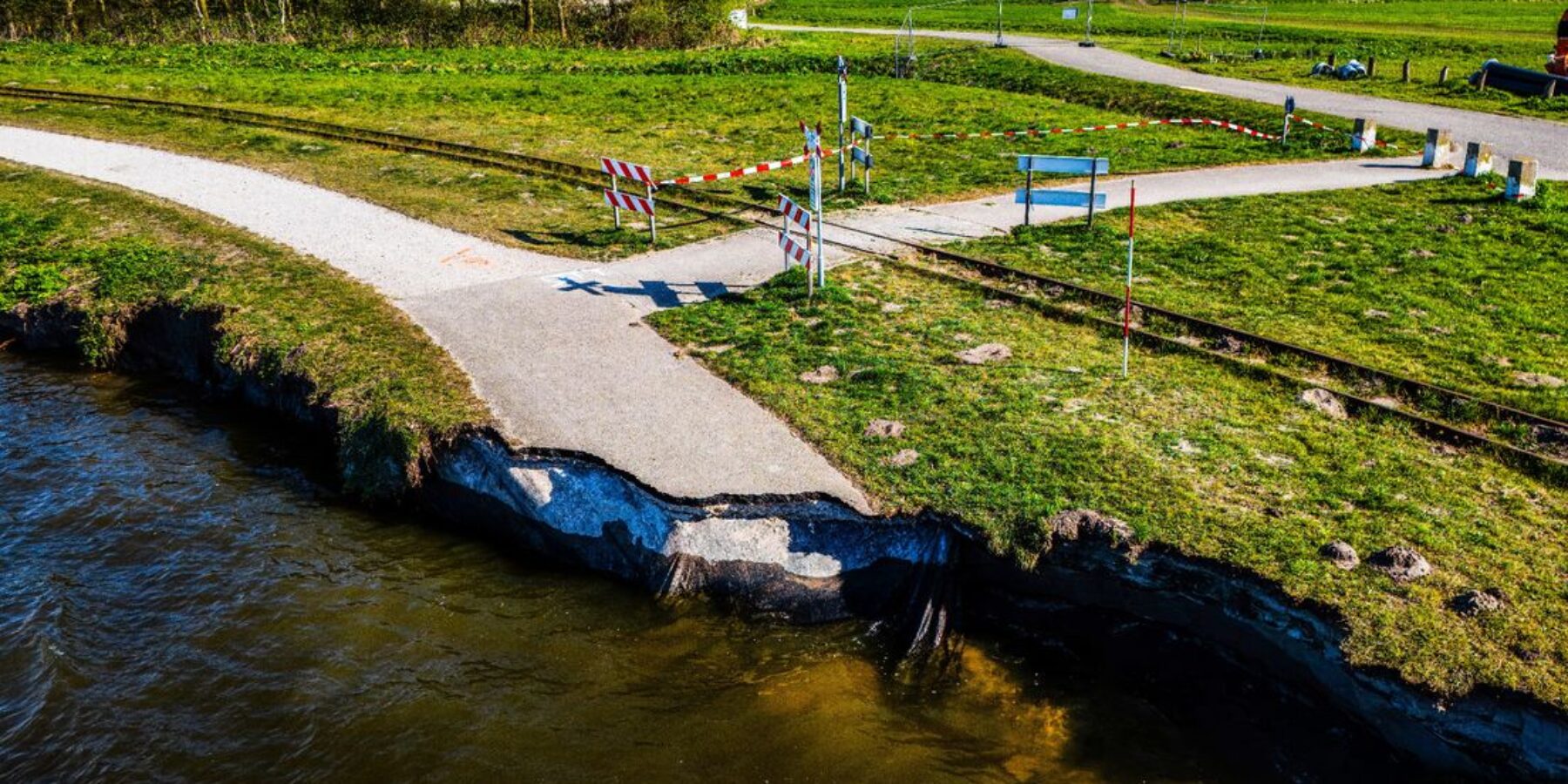 Bekijk hier dronebeelden van 1 april 2025 van de weggeslagen kade: