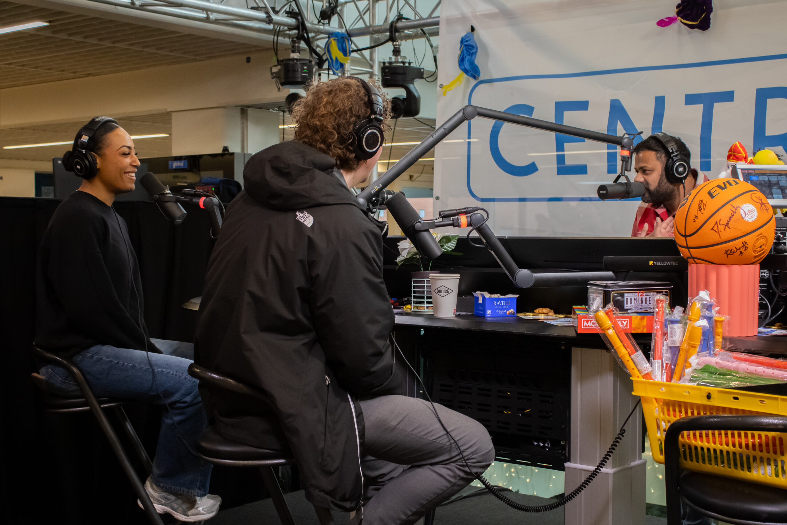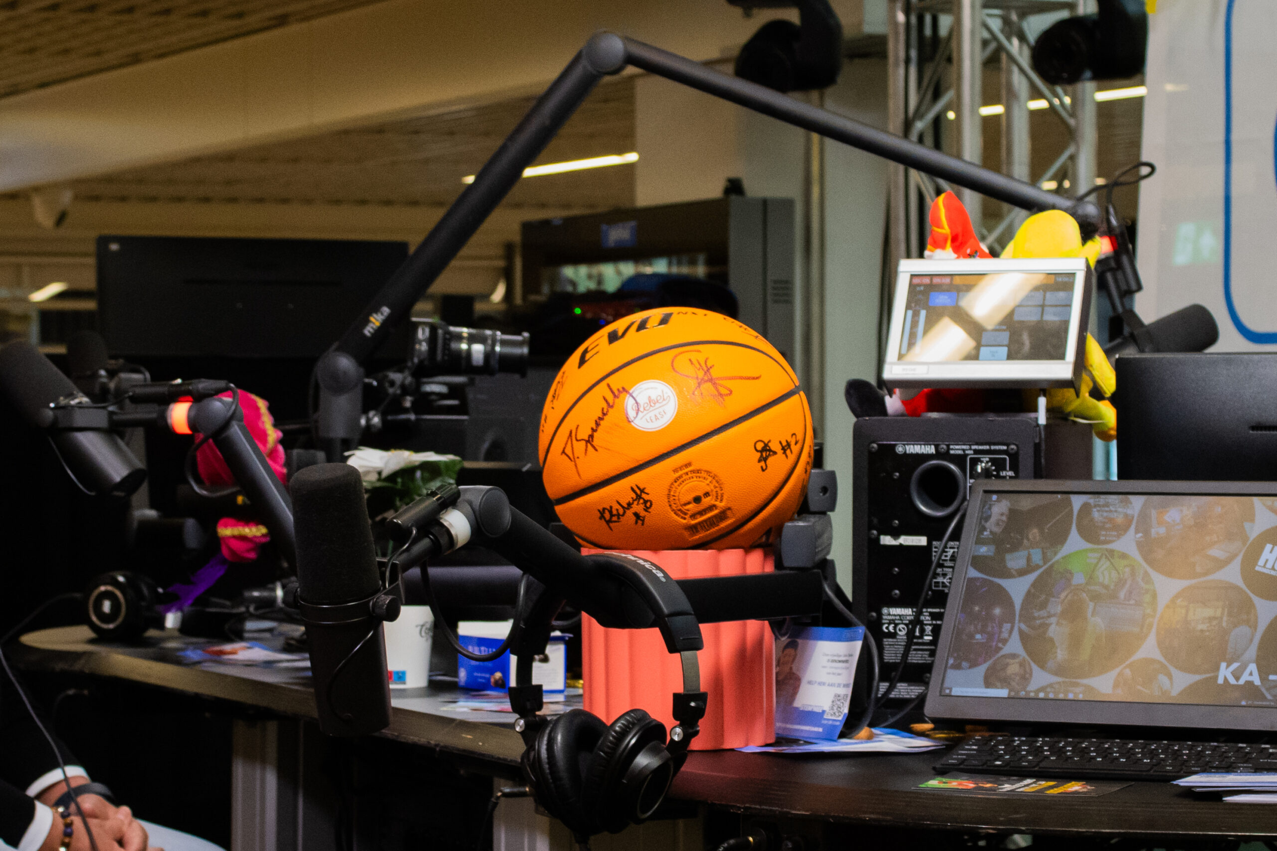11.45 uur De docenten van Rockschool Arjen en Tyra kwamen langs in de studio.