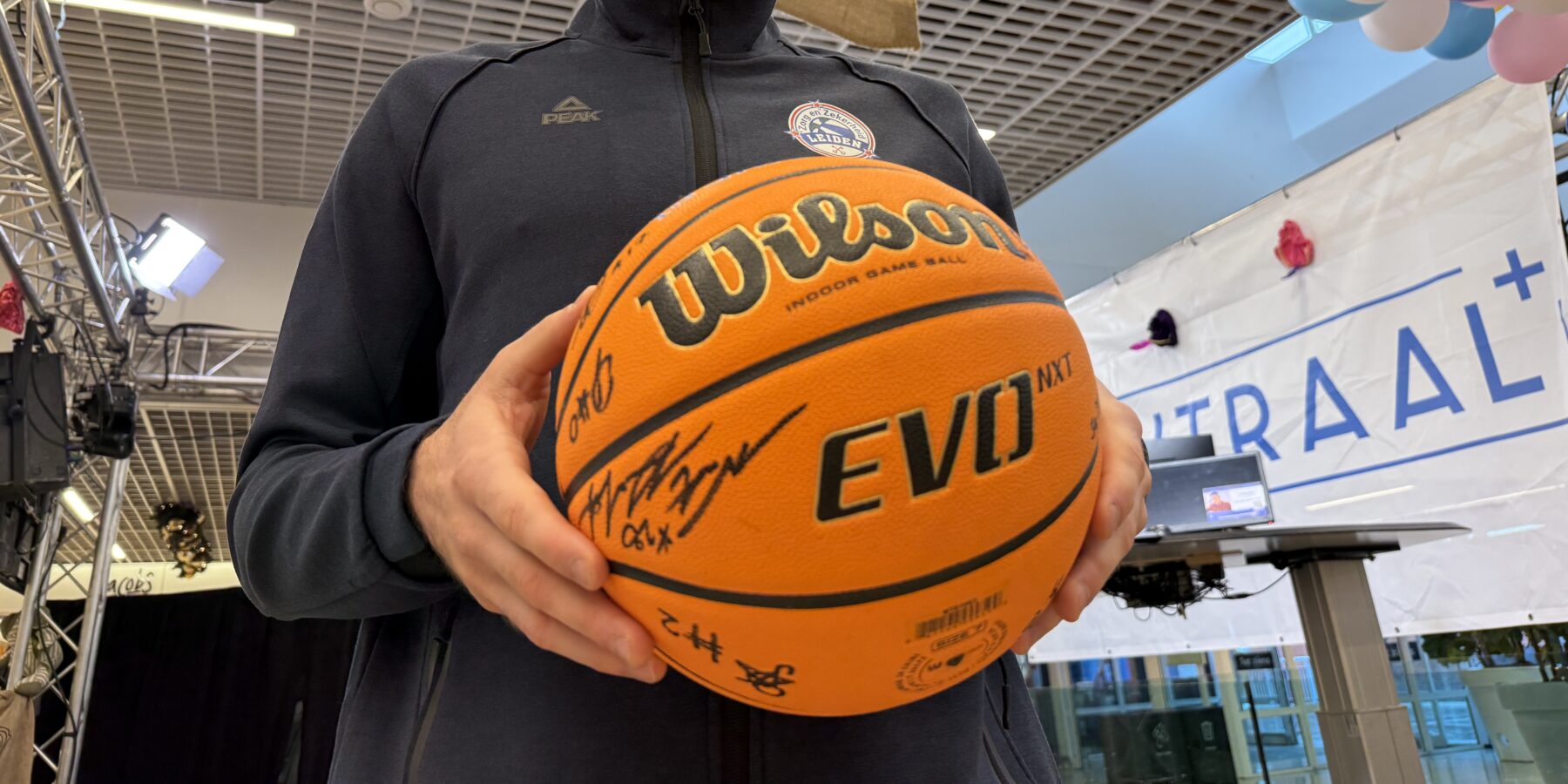 De spelers van ZZ Leiden kwamen donderdagochtend met een bijzonder cadeau voor Sintvoorieder1. Naast de doos met basketballen die ze doneren aan het goede doel brachten de eredivisie basketballers uit Leiden een gesigneerde bal mee.