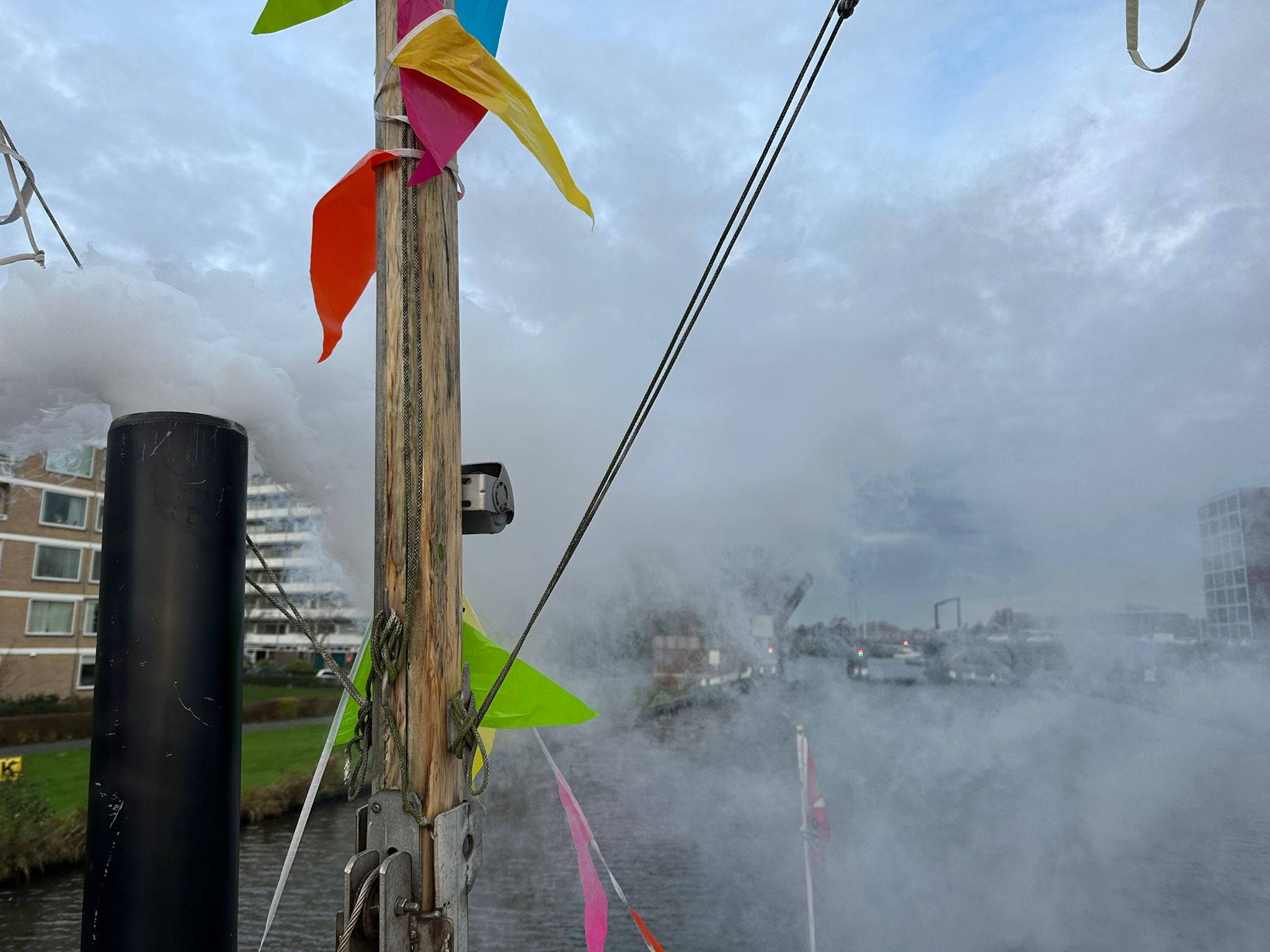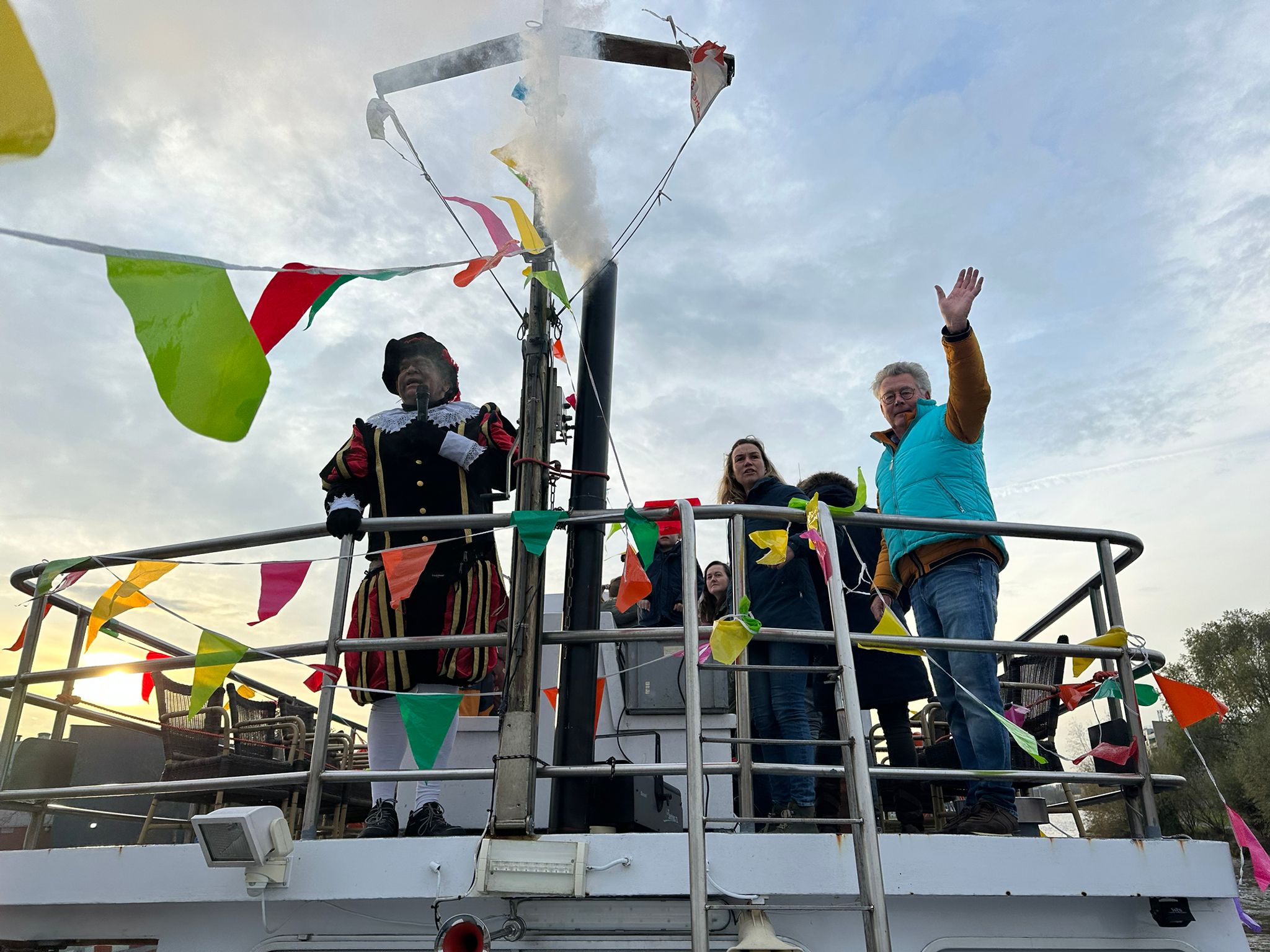 De boot was wat vertraagd. Dit kwam in eerste instantie doordat Sinterklaas niet te vinden was en vervolgens doordat de boot wat moeite had om aan te meren om de Sint uiteindelijk aan boord te laten komen.