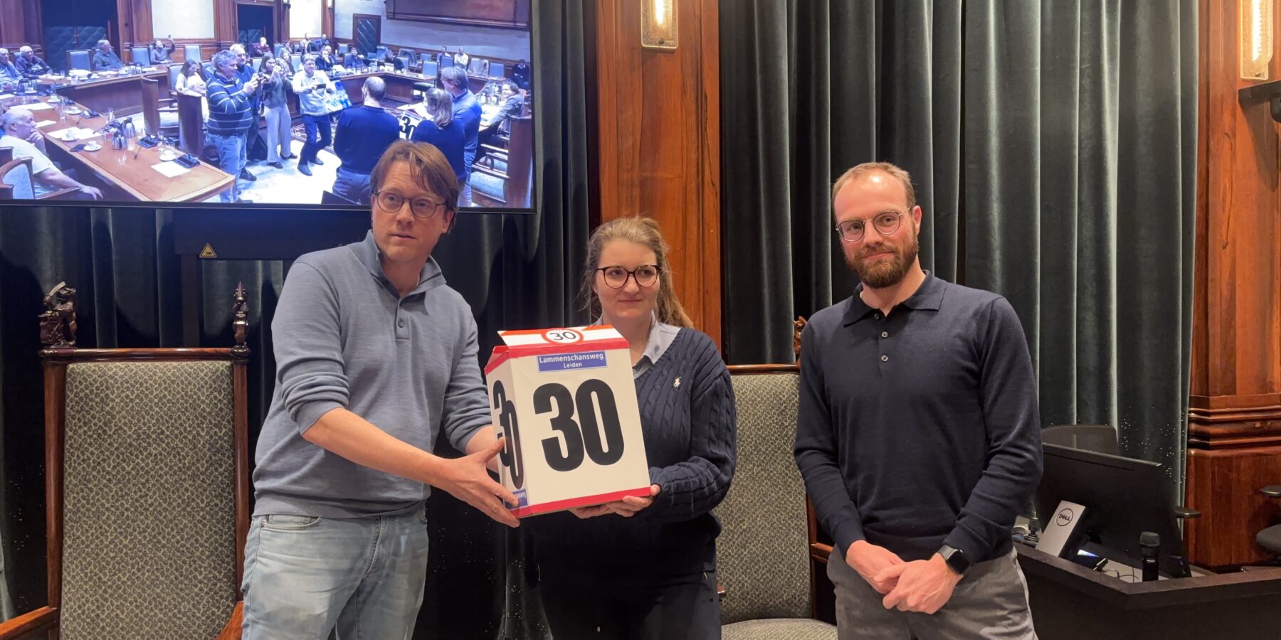 Een vertegenwoordig van de inwoners van de Lammenschansweg overhandigde de petitie, die maar liefst 4226 keer is ondertekend, aan commissievoorzitter Bo Lemmens. De vertegenwoordiger van de bewoners benadrukt dat de huidige inrichting van de weg onveilig is. Het verlagen van de snelheid zou een zeer effectieve manier zijn om de veiligheid te verbeteren: volgens hem verkleint dit niet alleen de kans op ongelukken, maar ook de ernst van het letsel als het toch misgaat.