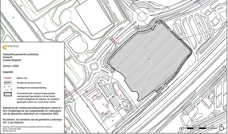 Het college van burgemeester en wethouders heeft donderdag besloten om een voorkeursrecht te vestigen op het noordelijke deel van de Bospoort in Leiderdorp. Meubelgigant IKEA had ooit plannen op deze plek en kocht de grond. In 2018 bedacht het bedrijf zich, sindsdien ligt het terrein braak. Het voorkeursrecht bepaalt dat, wanneer IKEA de grond verkoopt, ze dit als eerste aan de gemeente moeten doen.