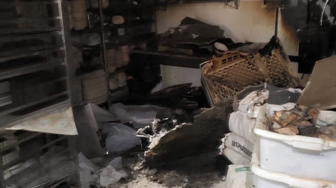 “Alles is zwart. Het heeft gesmeuld en er was weinig zuurstof, dus je houdt vooral roet over. Lampen zijn gesmolten, het plastic droop naar beneden… Het stinkt, alles is verwoest.” Volgens de brandweer ontstond het vuur waarschijnlijk bij de ovens en sloeg het door naar het plafond.