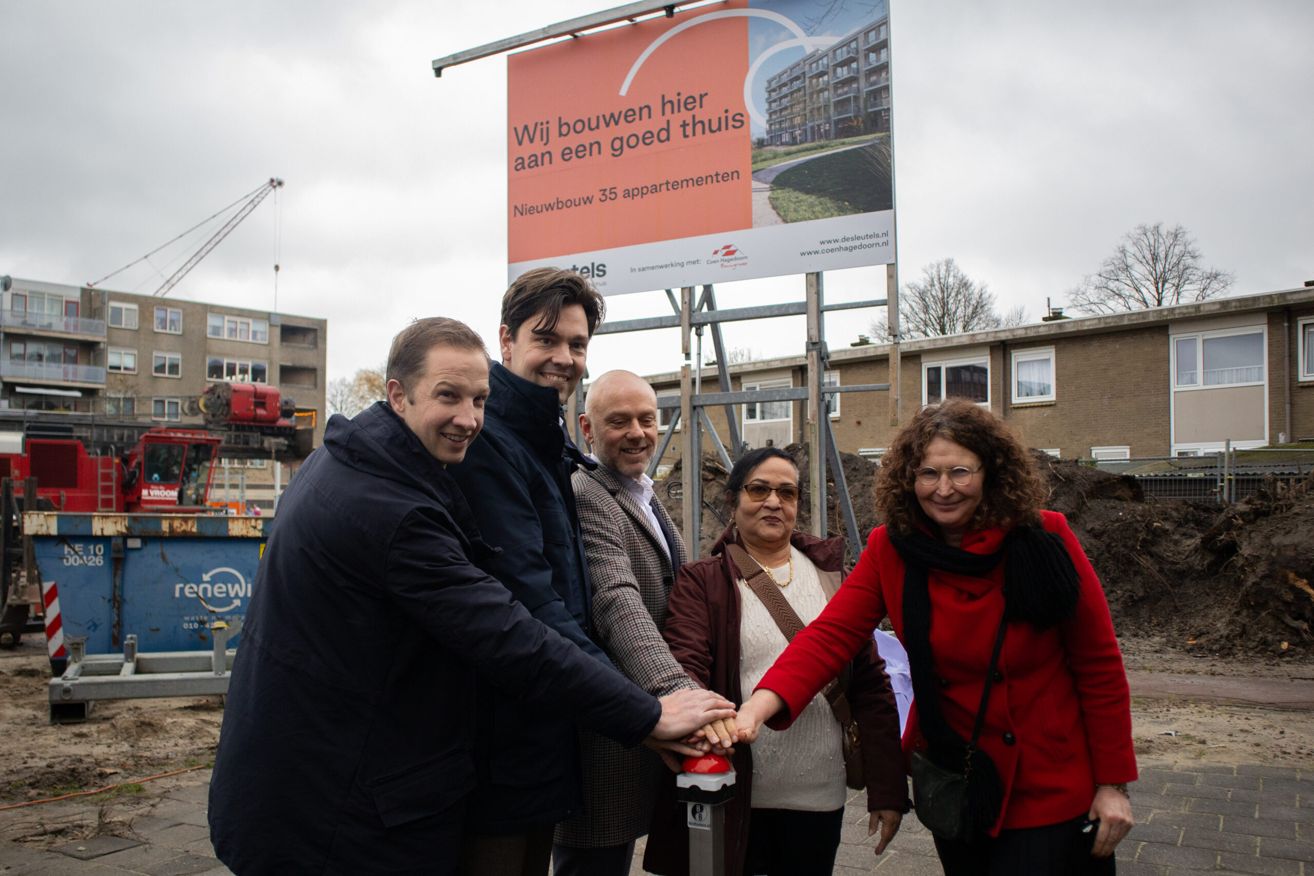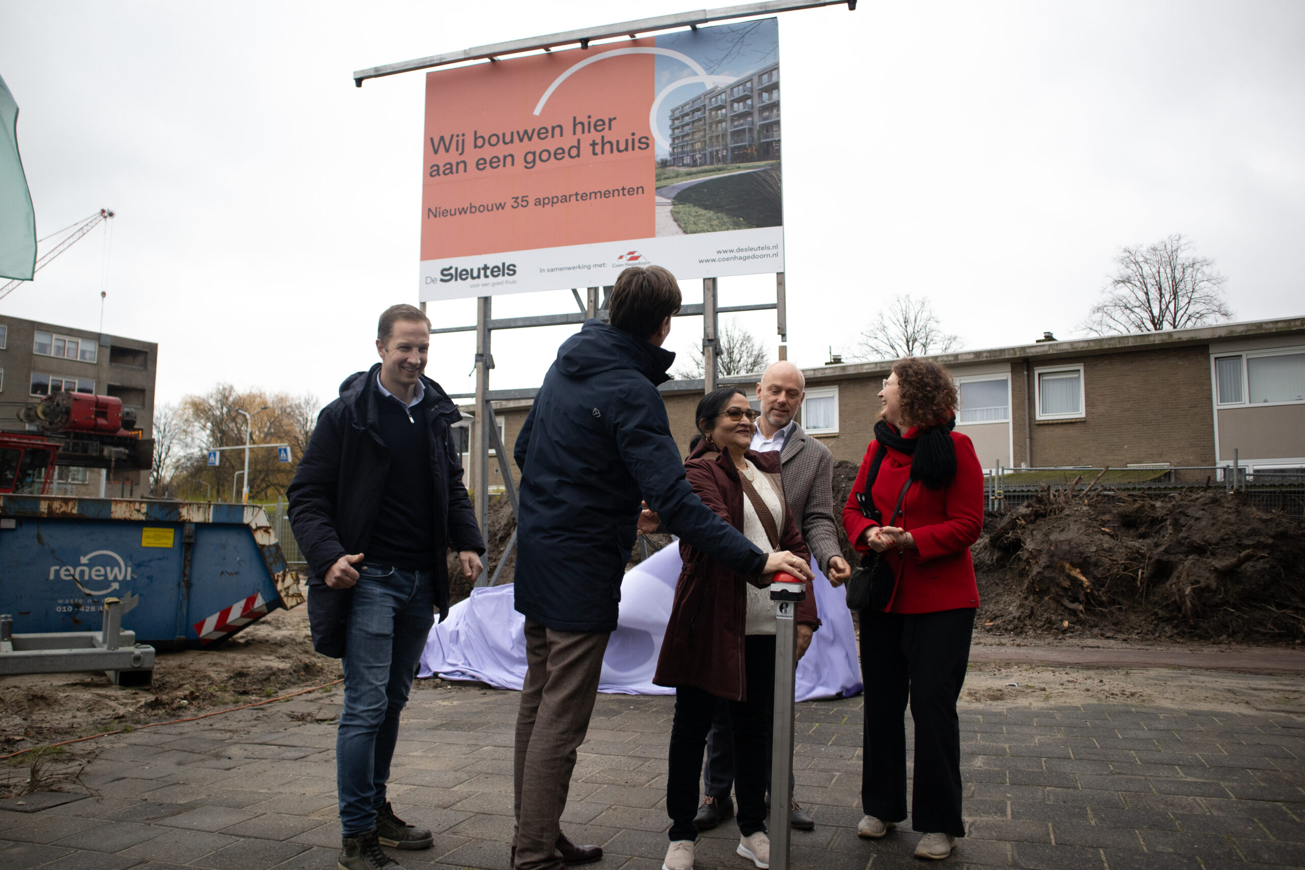 Met een symbolische handeling is maandag de bouw gestart van 35 nieuwbouwappartement in project Touw, op het voormalige Rode Touwenplein in Leiden-Noord. Volgens Julius Terpstra markeert dit niet alleen de start van één project, maar van een hele reeks ontwikkelingen binnen de gebiedsontwikkeling Park de Zwijger. “Dit is het eerste project in een trits aan volgende projecten. Daarom is het belangrijk dat we hier vandaag officieel mee zijn begonnen,” aldus wethouder Terpstra.