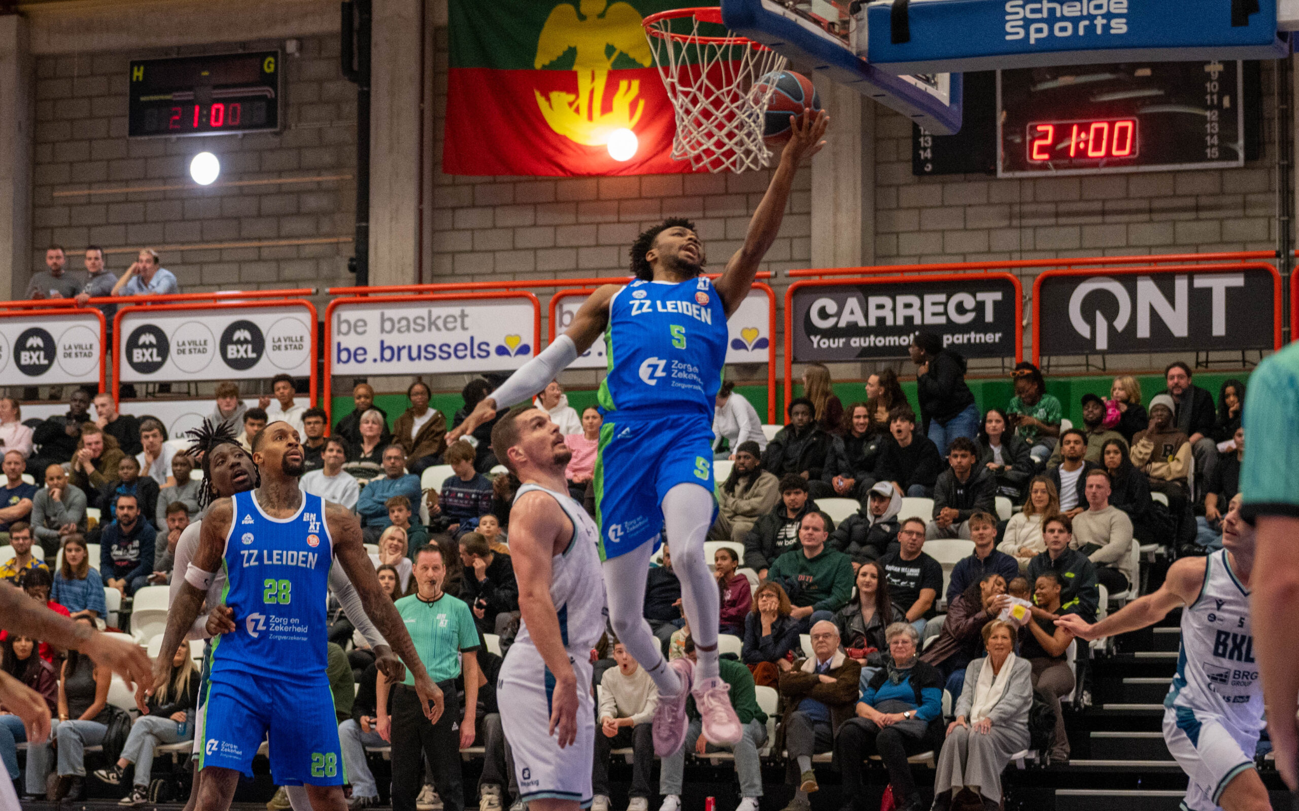 De Leidse eredivisiebasketballers Zorg en Zekerheid Leiden hebben vrijdagavond in Brussel hun derde nederlaag van het seizoen moeten slikken. Brussels Basketball was de hele wedstrijd sterker, maar vooral in het vierde kwart liepen de Belgen flink uit. Het werd uiteindelijk 97-80 in het voordeel van de thuisspelende Brusselaren.