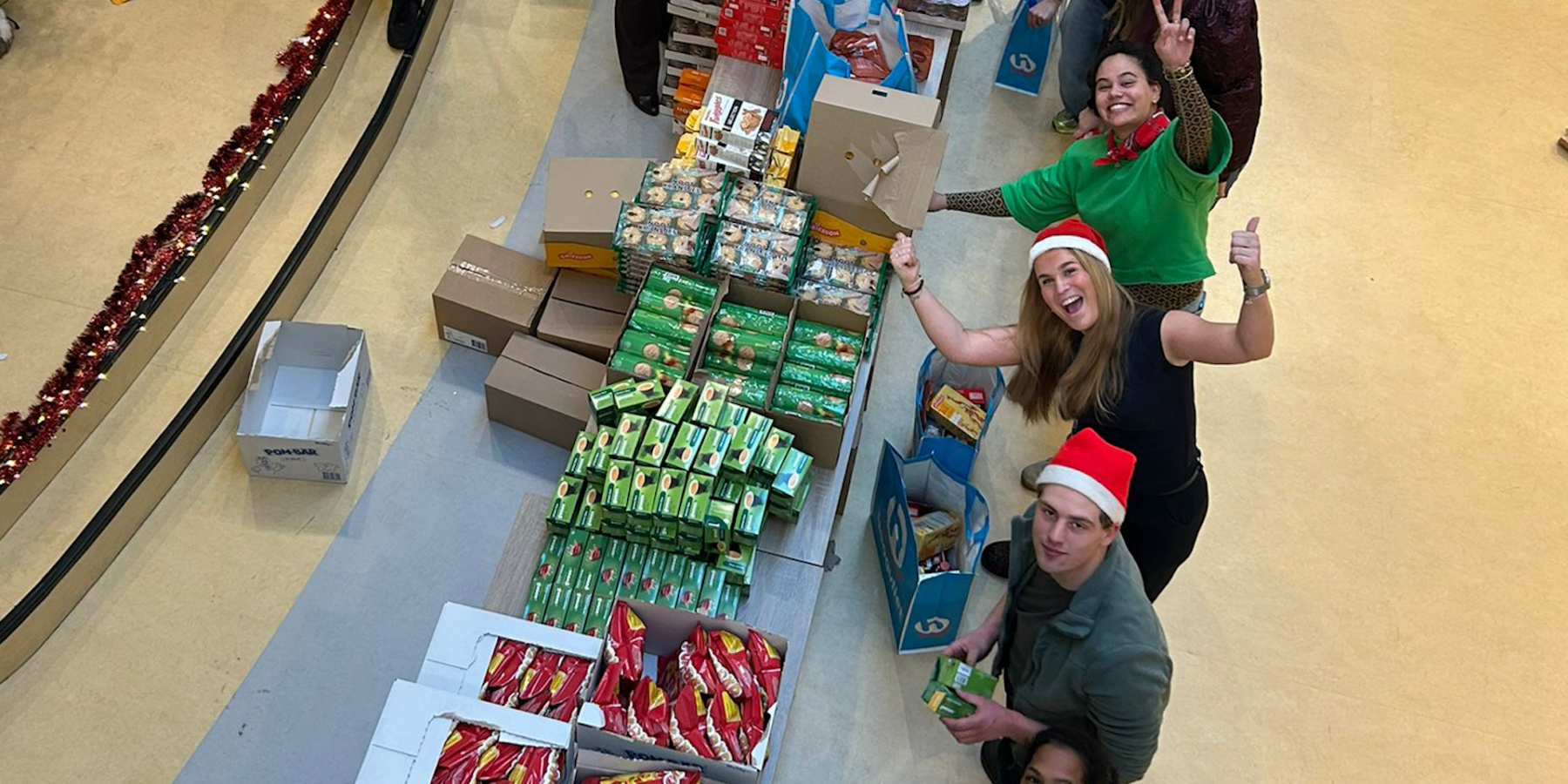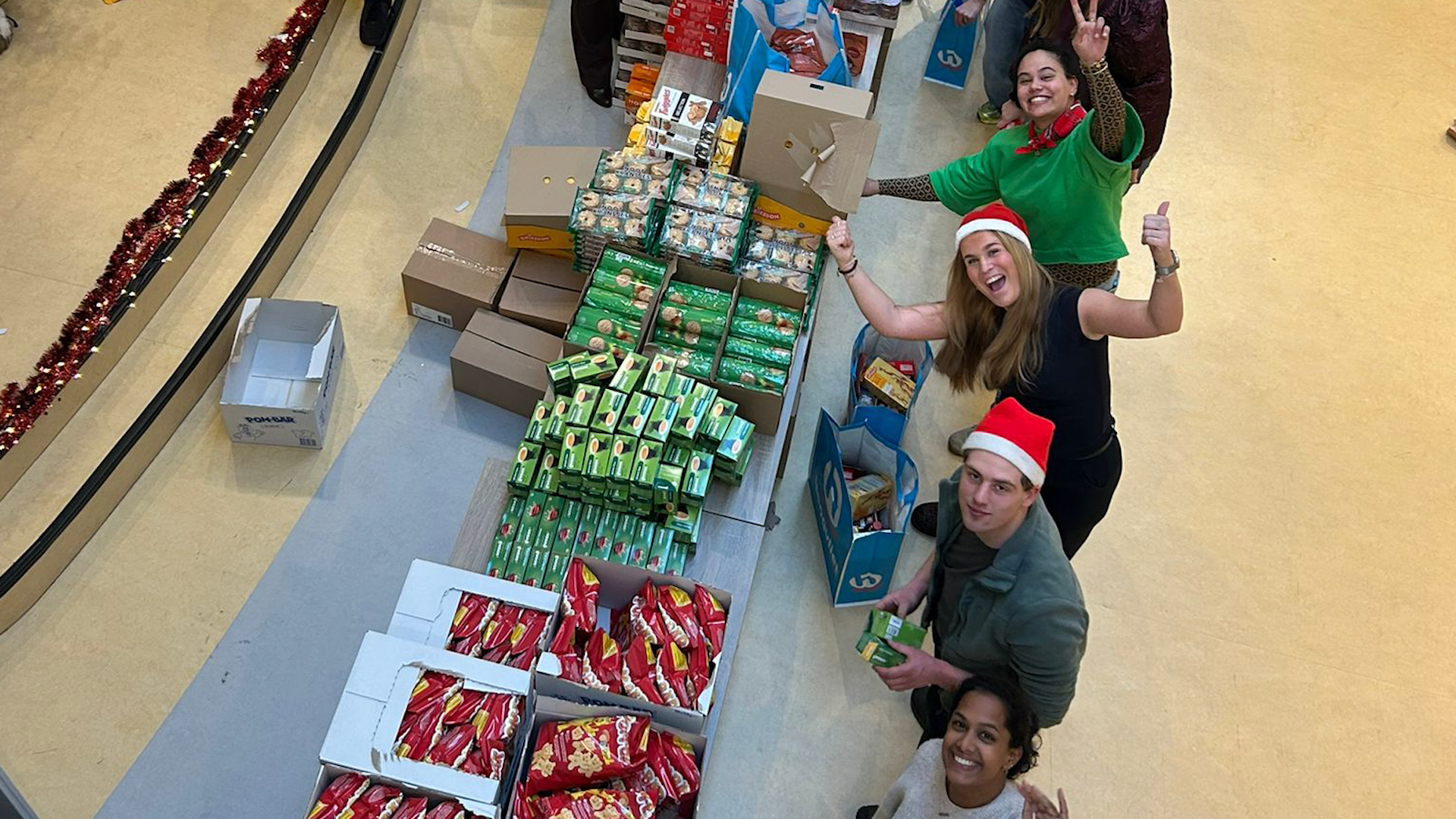 Het kerstpakket bestaat uit een grote tas vol lekkers voor de feestdagen. “Dankzij het Jeugdeducatiefonds is dit inmiddels het derde jaar op rij dat we dit kunnen doen”, verklaart een medewerker trots.