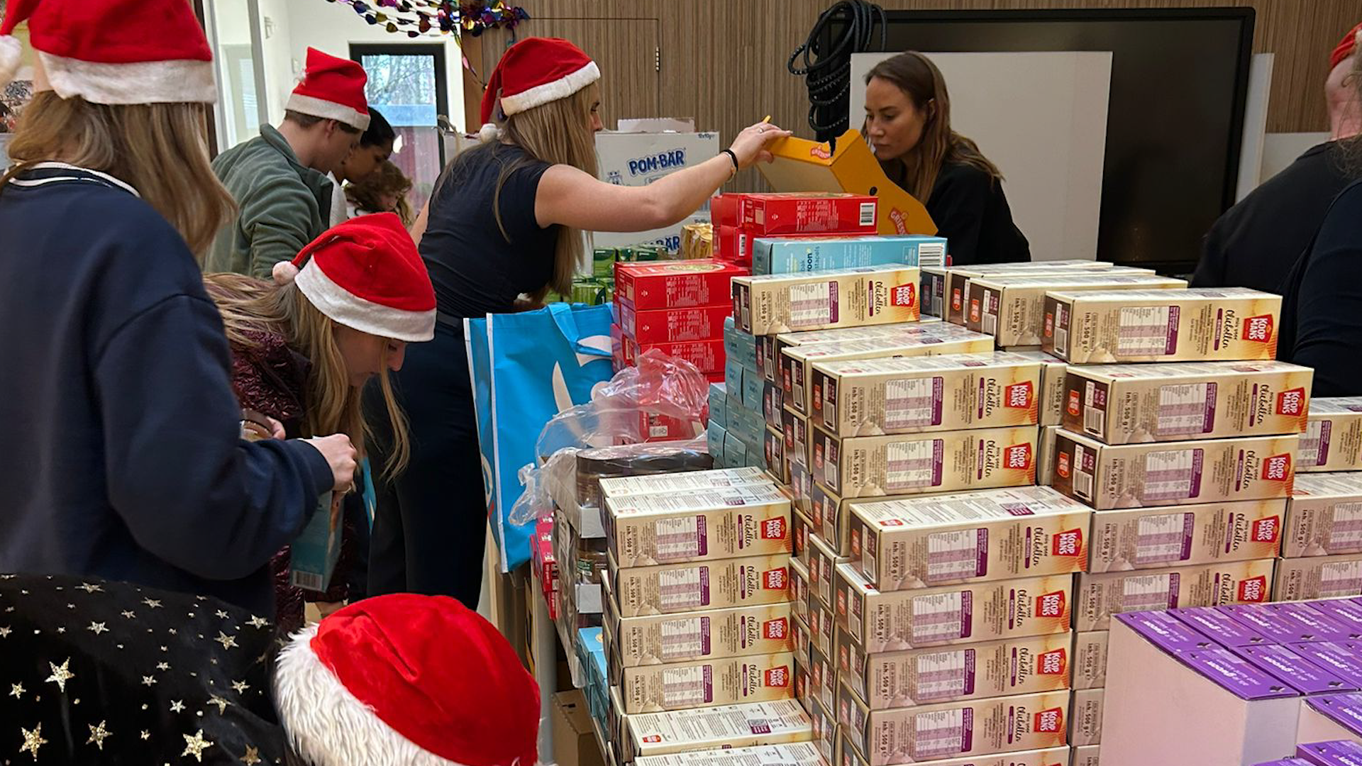 Voordat de kerstpakketten kunnen worden meegegeven, werden ze met zorg ingepakt. “Dit is inmiddels een vast moment geworden waarop het team samenkomt om de pakketten met liefde klaar te maken voor alle kinderen van onze school. Voor ons voelt dit als het rondmaken van de cirkel van de kerstgedachte.”