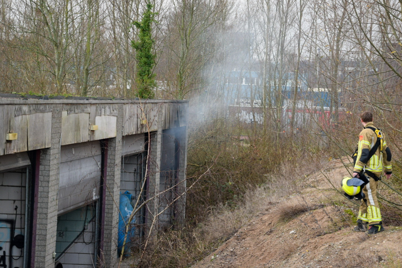 De brandweer is zondagmiddag uitgerukt voor een brandmelding aan de Hallenweg. In een garagebox, die niet meer in gebruik is, woedde korte tijd brand. De hulpdienst had moeite om bij het slooppand te komen, maar toen ze er eenmaal waren, was de kleine brand snel onder controle.