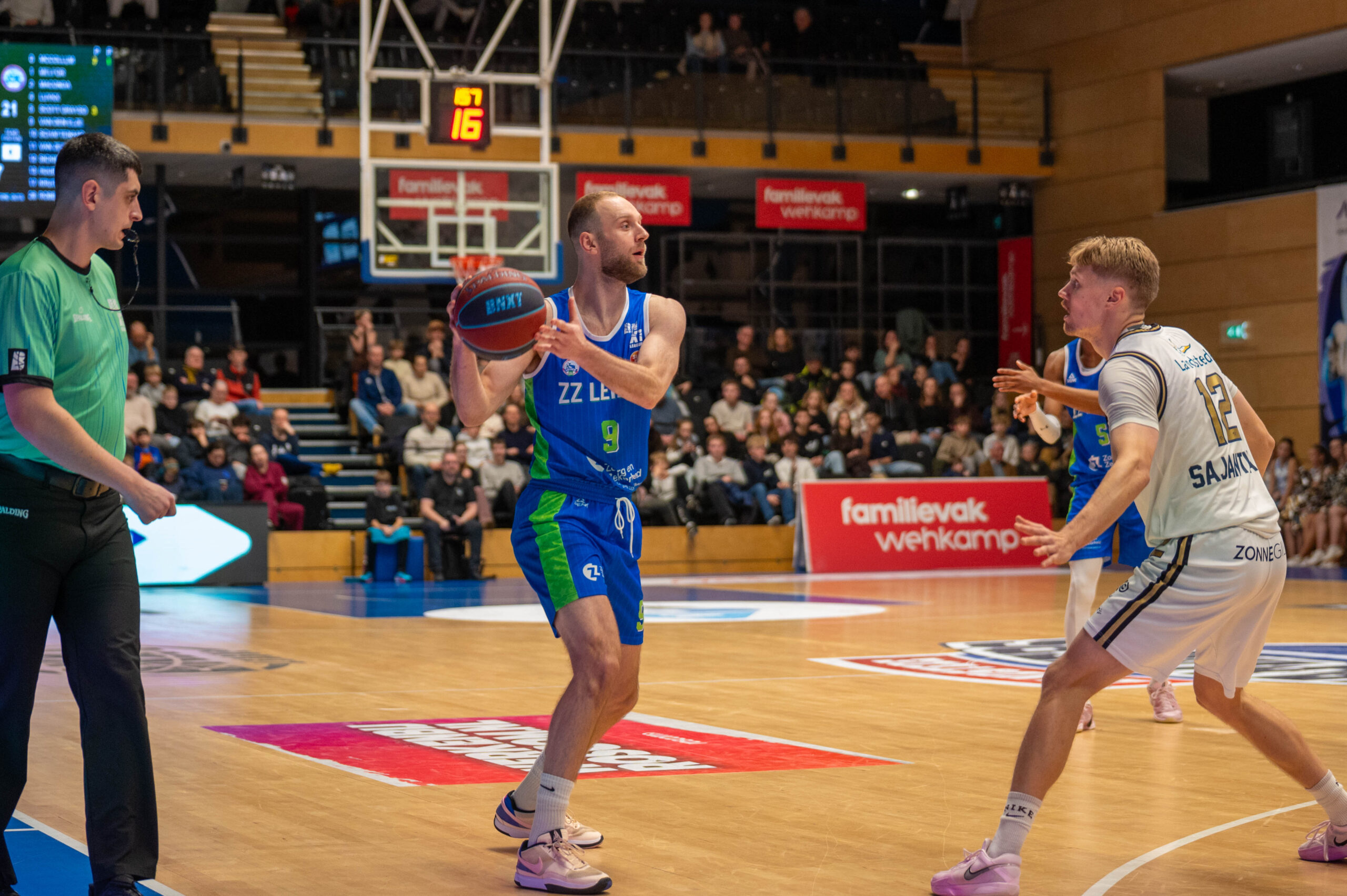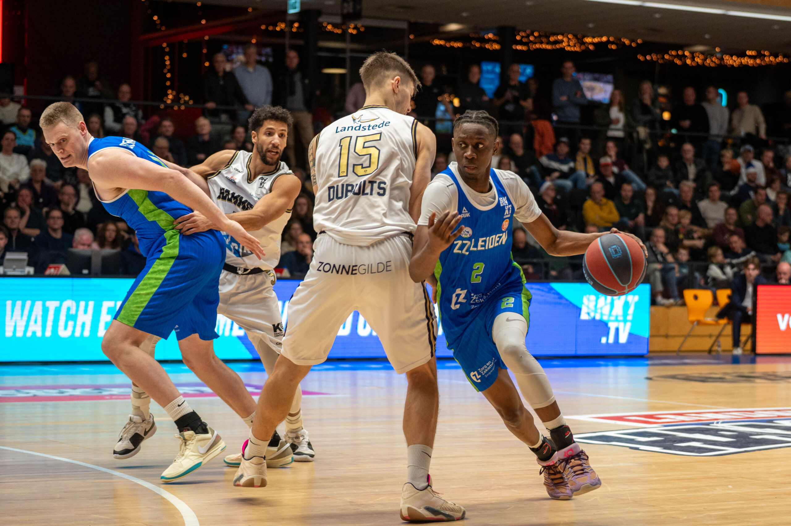 De Leidse eredivisie basketballers van ZZ Leiden hebben de uitwedstrijd in Zwolle gisteravond gewonnen. De Landstede Hammers werden in eigen huis verslagen met 81-90.