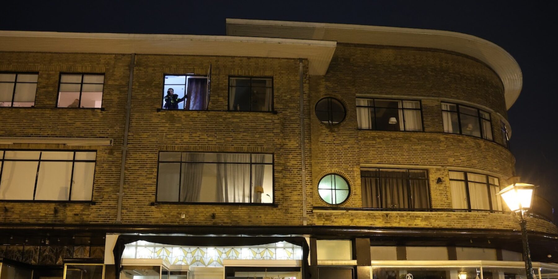 Een klapperend raam van bovenwoning aan het Gangetje in Leiden, zorgde donderdagavond voor een gevaarlijke situatie.