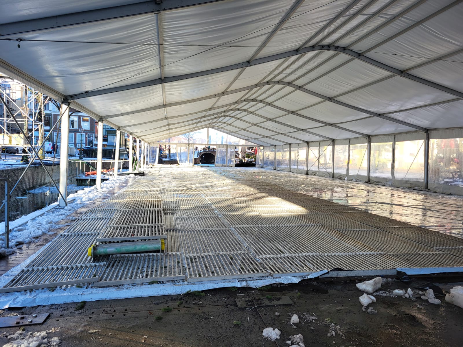 Een “melodramatisch moment”, zo noemt organisator Jeroen Weijermars van Stichting Sport in Beeld het. “Dat afbouwen na vier weken heel hard werken, en een week opbouwen, dan voel je je toch even wat anders dan als je begint”. Tussen de sneeuwbuien door wordt met man en macht gewerkt aan de afbouw van de ijsbaan. Een groep jonge mannen is bezig met het wegtillen van de buizen onder de ijsbaan, een andere groep is alles in dozen aan het inpakken en ook de pontons worden losgekoppeld.