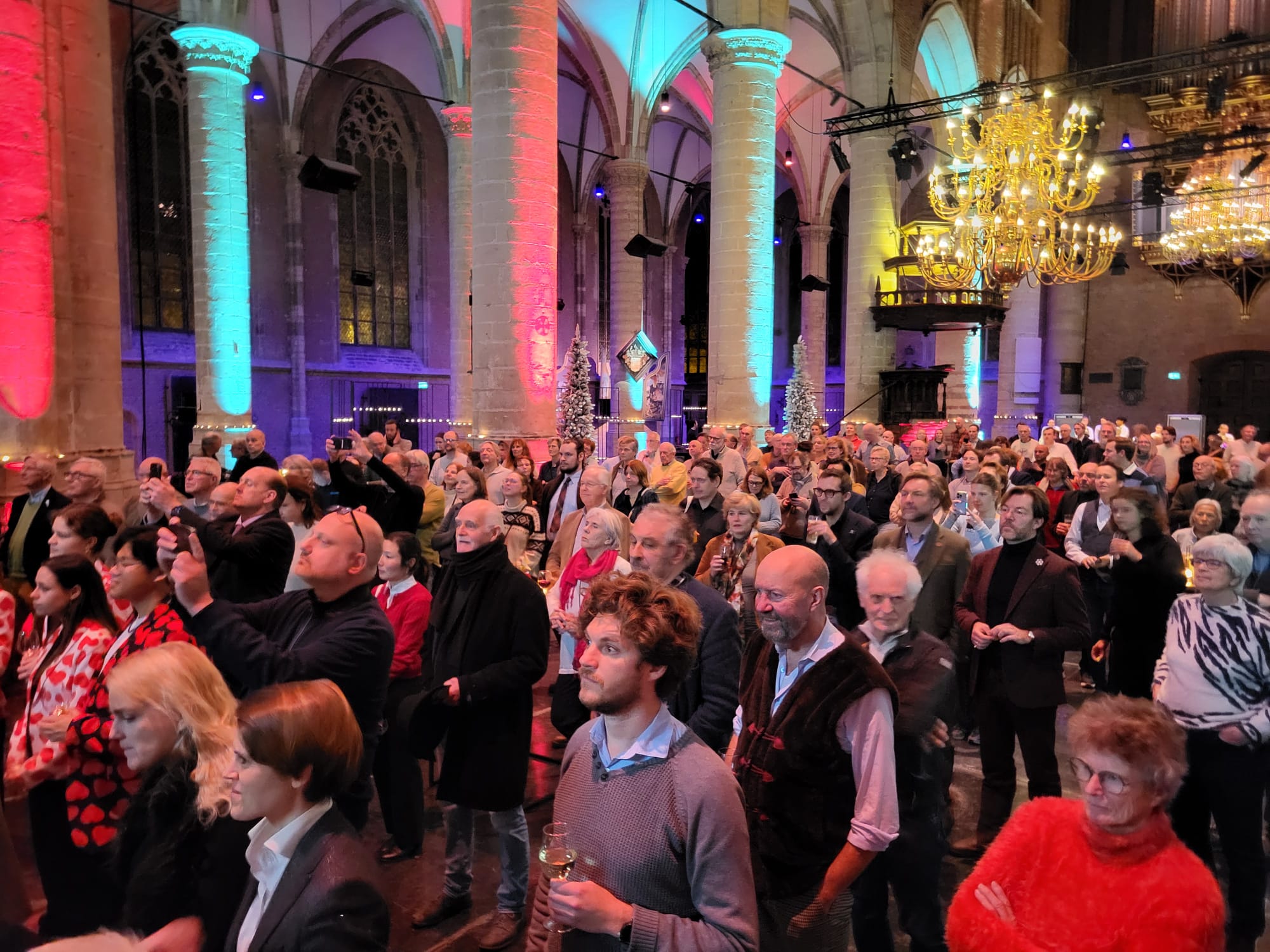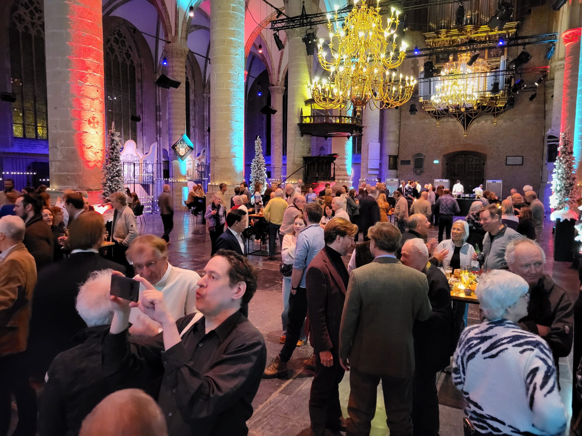 In de Pieterskerk in Leiden hing dinsdagavond een gezellige sfeer. Ondanks het winterse weer met hevige sneeuwval wist een flinke groep Leidenaren de weg naar het historische kerkgebouw te vinden voor de jaarlijkse nieuwjaarsreceptie van de gemeente.