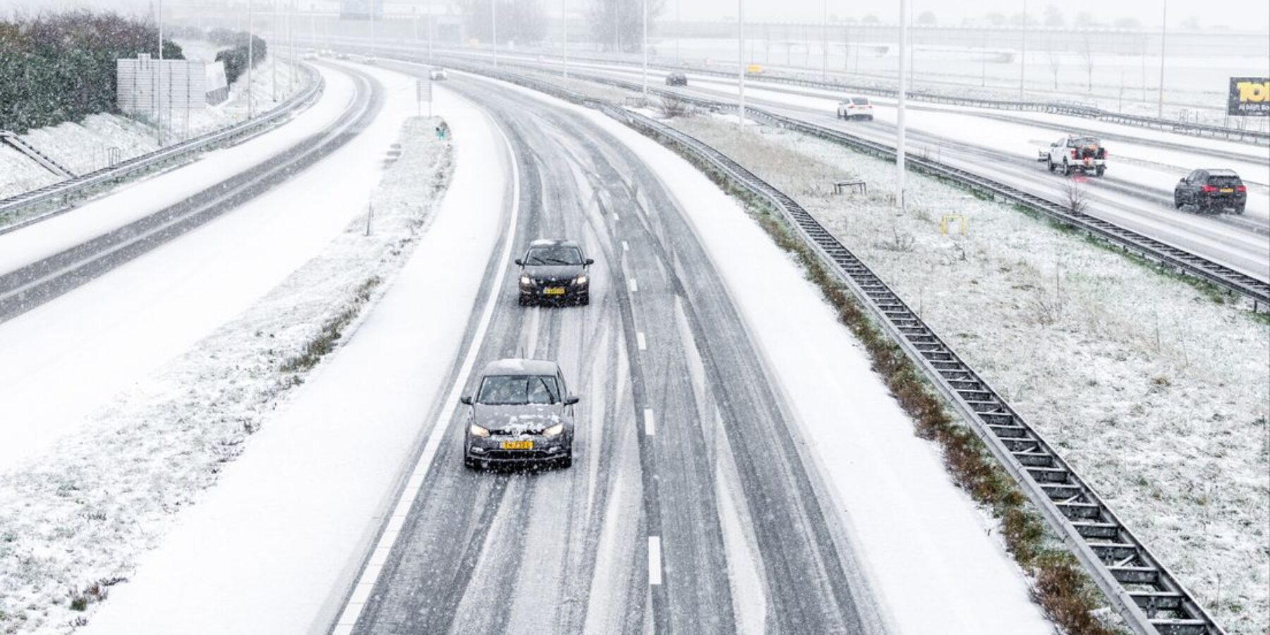 Gladde wegen en winters weer zorgen ervoor dat je rustiger moet rijden. De ANWB adviseert weggebruikers om de gebruikelijke snelheid te halveren en twee keer zoveel afstand te houden. Bovendien is bij een gladde weg de remweg langer, dus heb je die extra ruimte ook nodig. “Die extra meters geven jou en degene achter je meer tijd en ruimte om te reageren op onverwachte gebeurtenissen.”