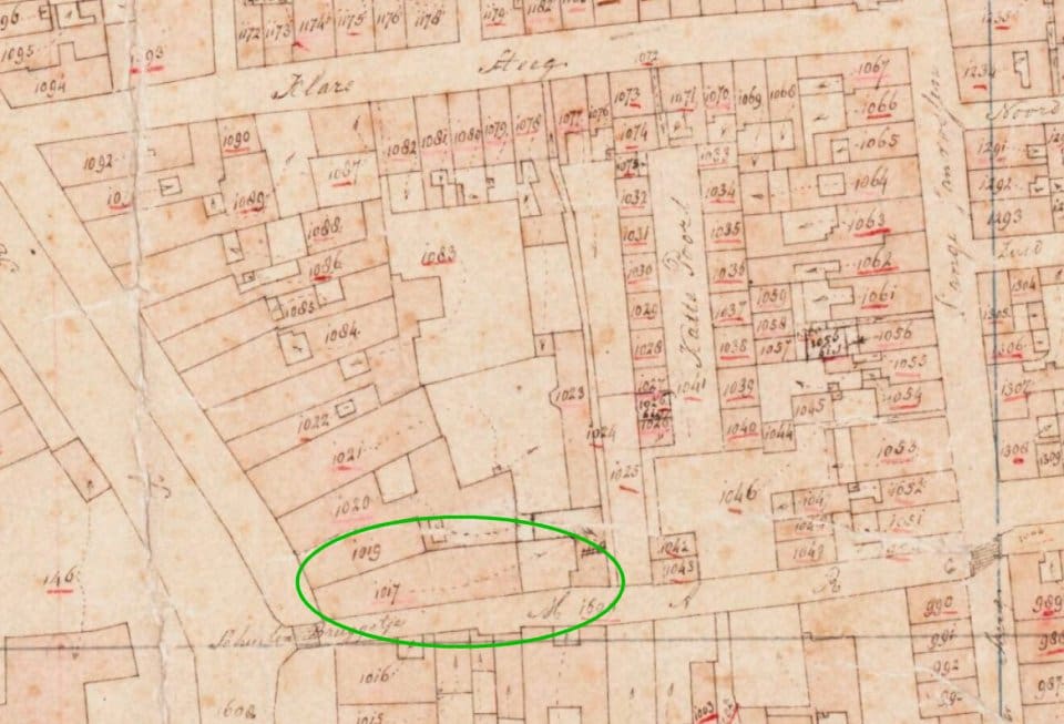 Op deze kaart uit het kadaster van 1832 is de woning omcirkeld. De Van der Werfstraat was toen nog niet gedempt: