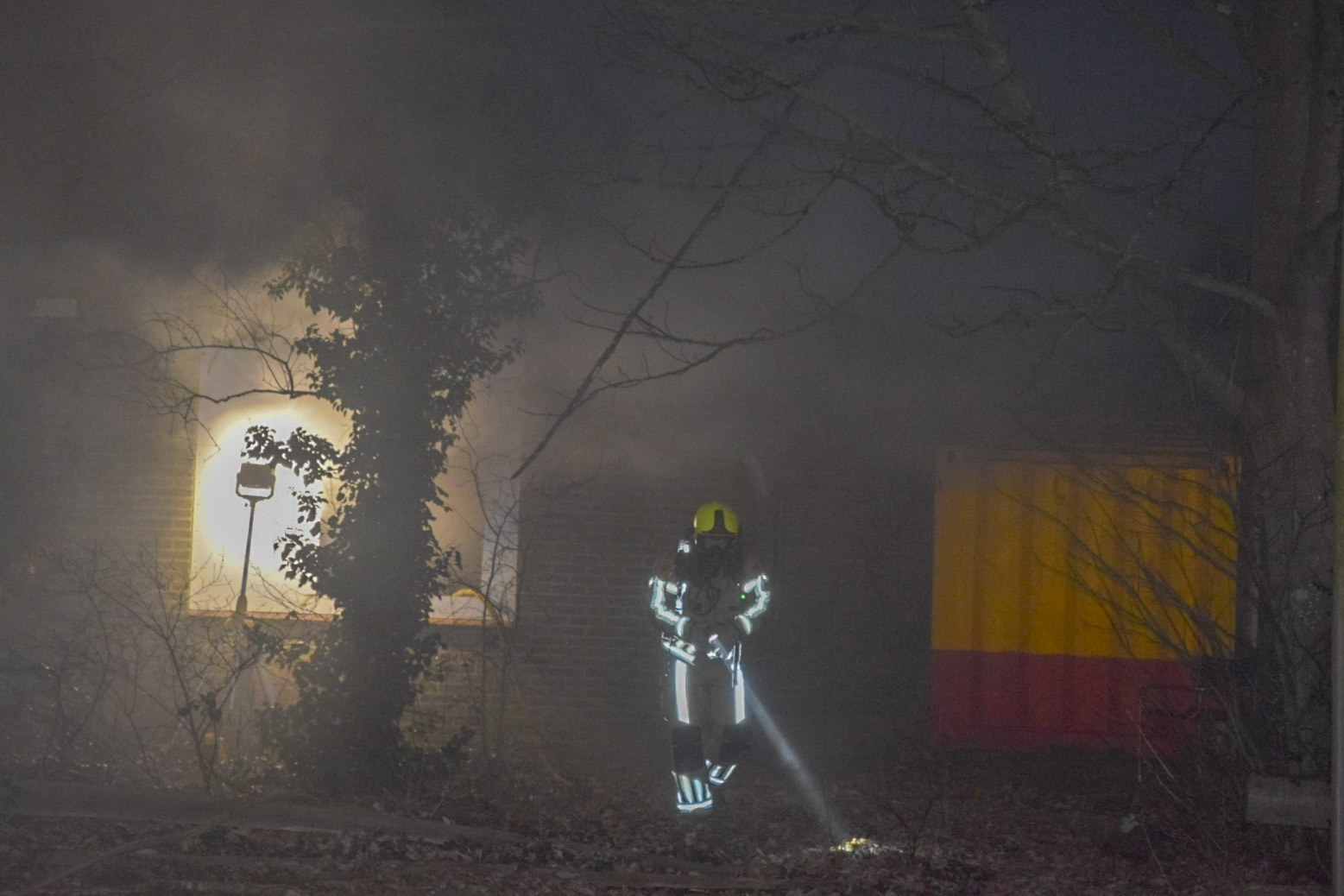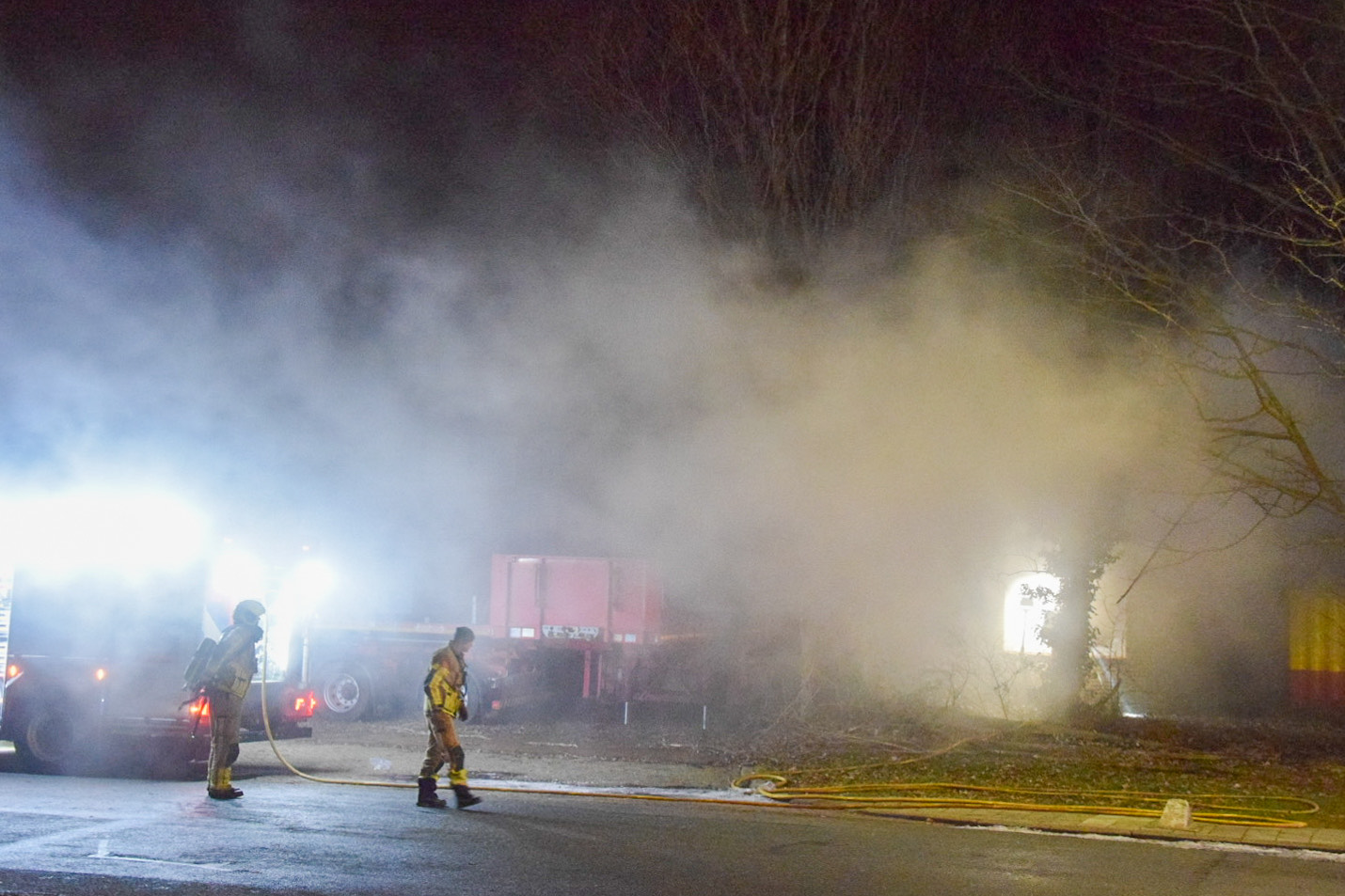 De brandweer schaalde op tot ‘middelbrand’ en kwam met meerdere tankautospuiten ter plaatse. Er was niemand aanwezig er zijn dan ook geen gewonden gevallen. De brand en het blussen zorgde wel voor flinke rookontwikkeling.
