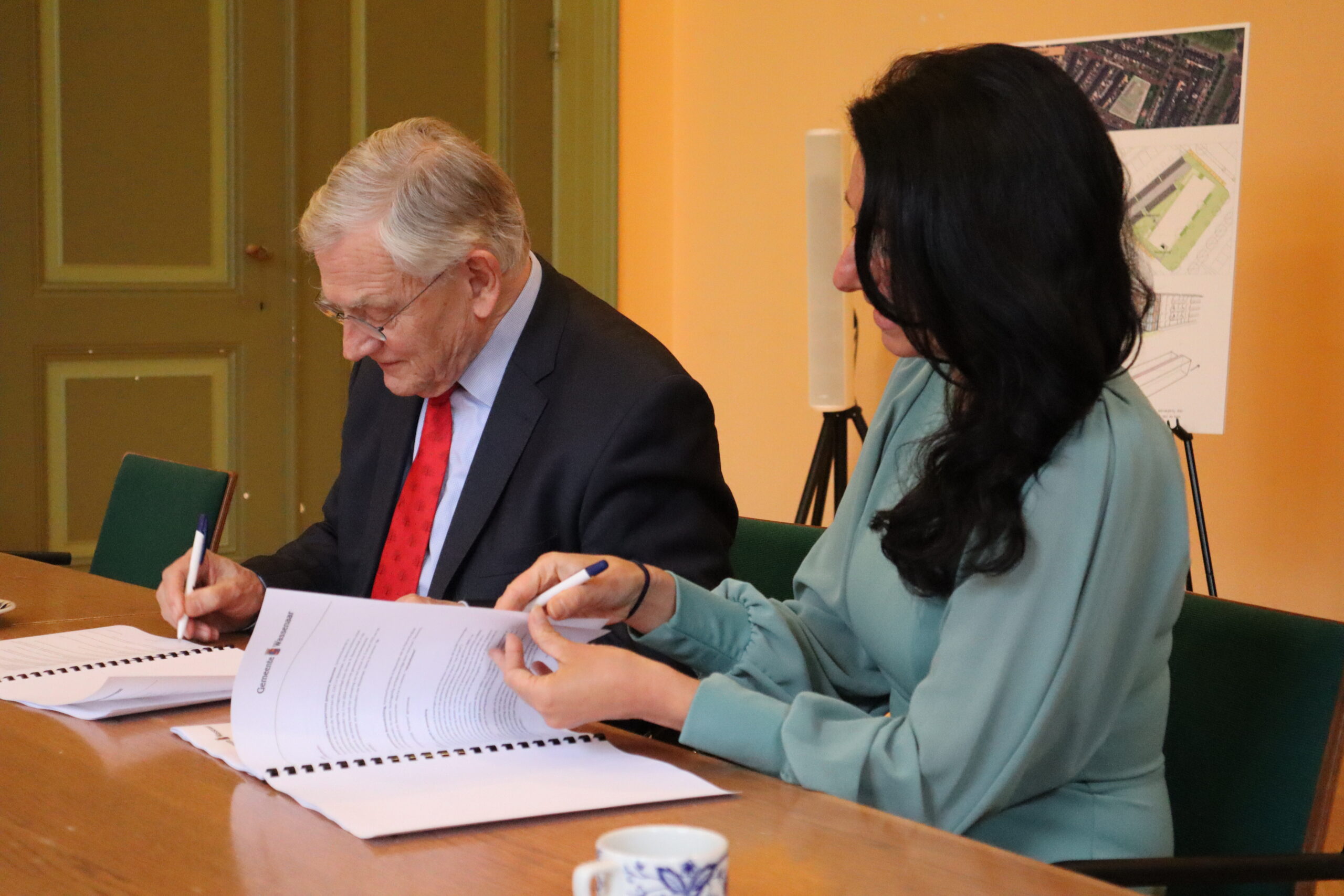 Op donderdag 15 januari ondertekende directeur-bestuurder Isis Desumma van de Wassenaarsche Bouwstichting samen met wethouder wonen Ritske Bloemendaal, de intentieovereenkomst voor de bouw van nieuwbouwappartementen aan de Van Rechterenstraat in Wassenaar. Met dit project worden 48 betaalbare en energiezuinige sociale huurappartementen gerealiseerd.