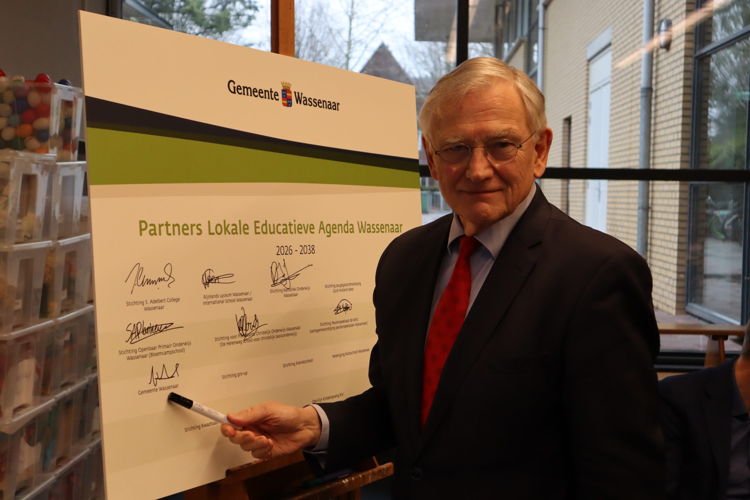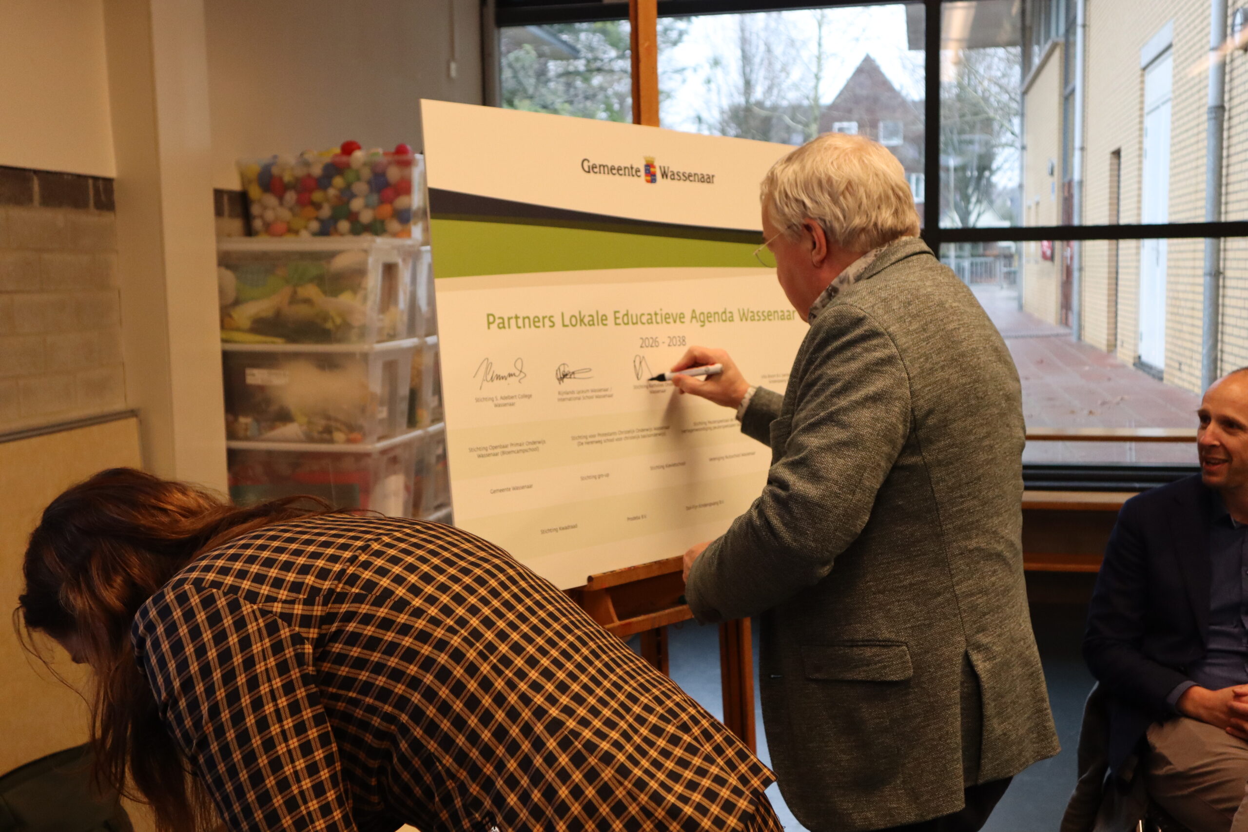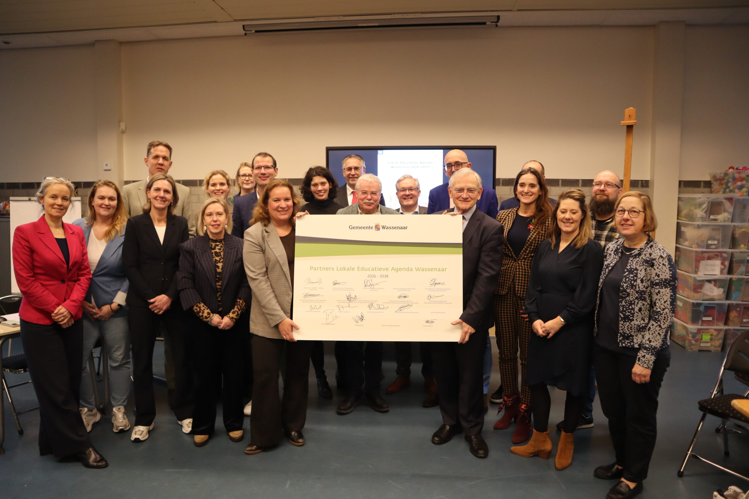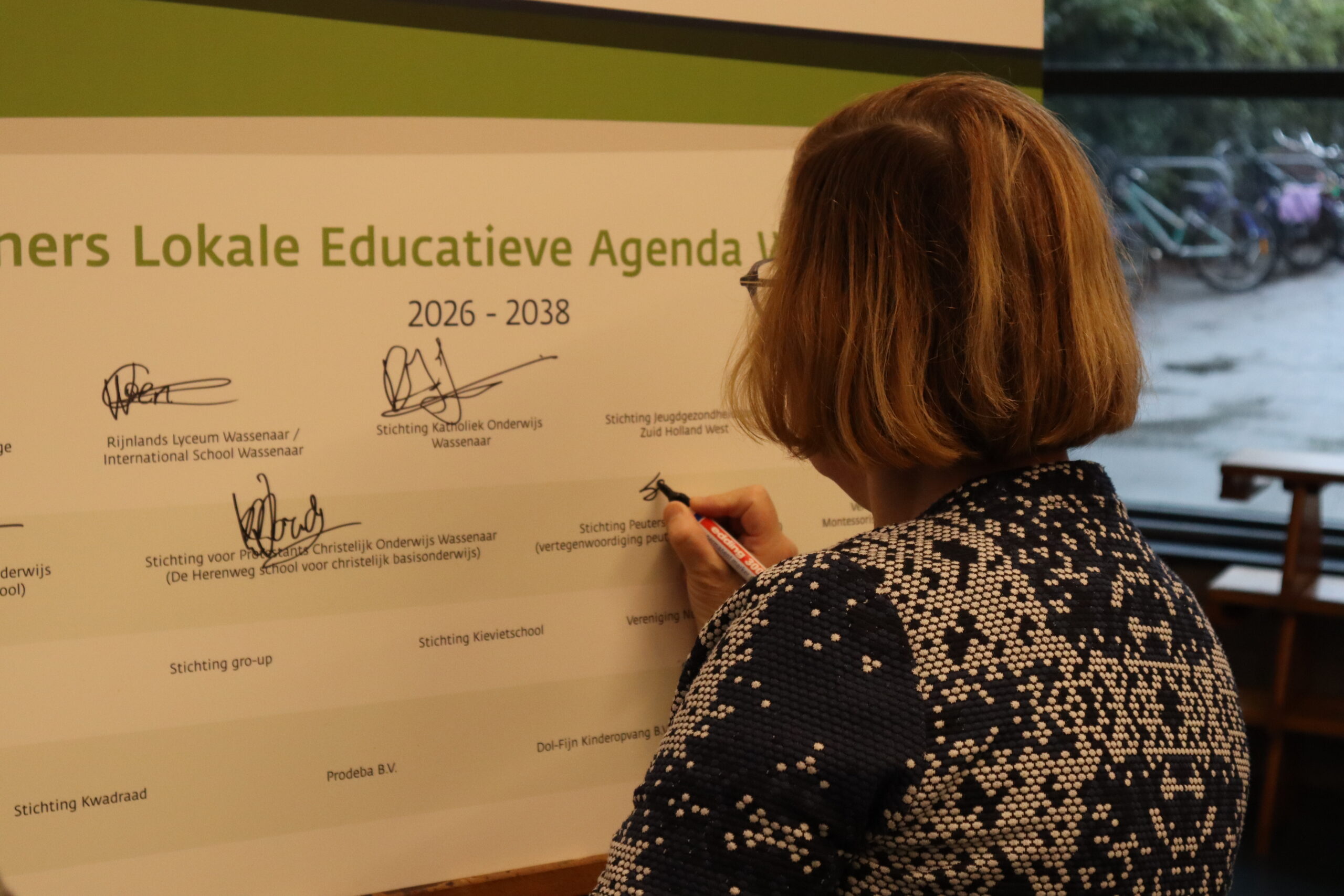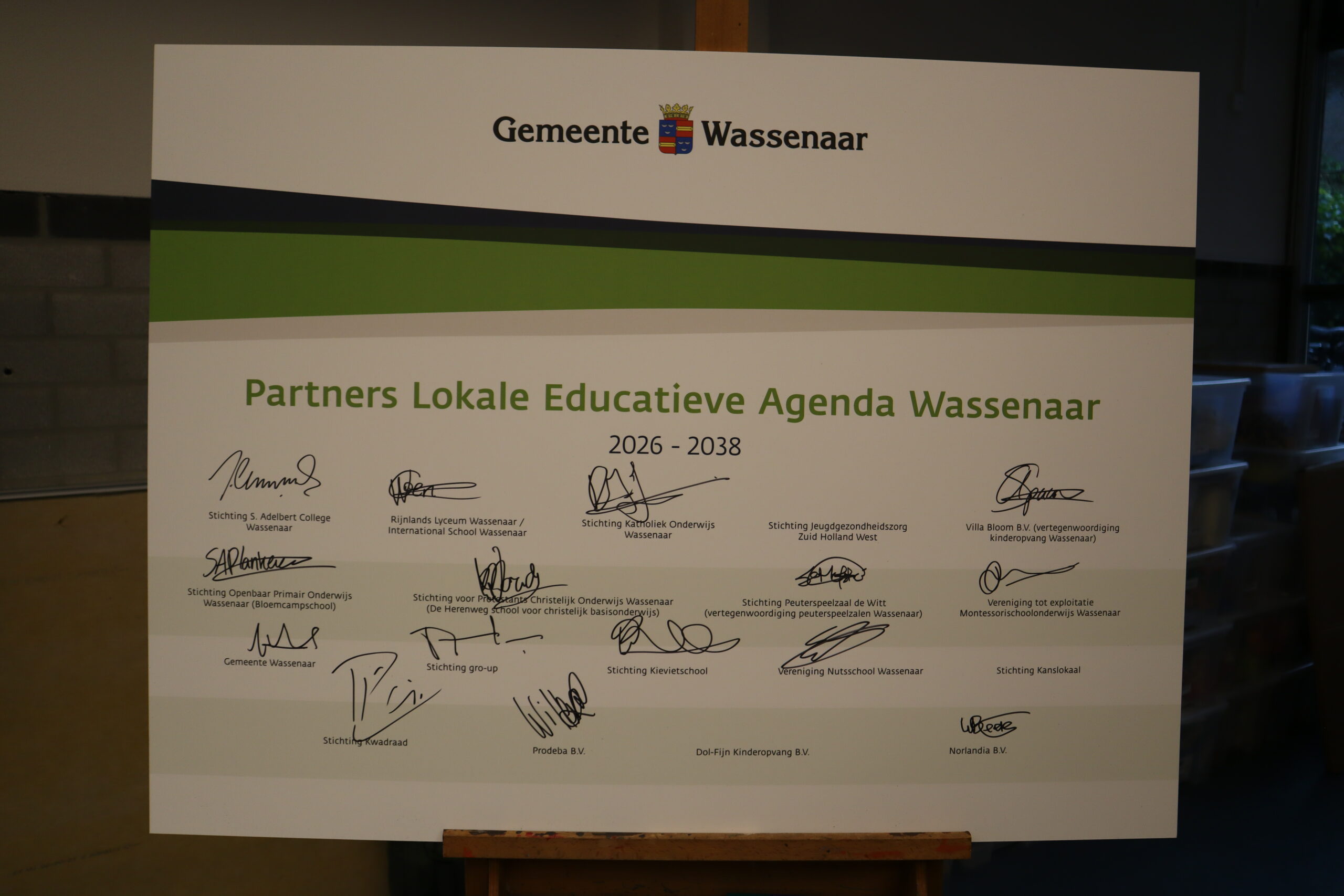 In de Bloemcampschool in Wassenaar is donderdagmiddag de Lokale Educatieve Agenda (LEA) ondertekend. De 18 betrokken partijen, waarvan enkelen afwezig waren, zetten ieder een handtekening onder het samenwerkingsplan.