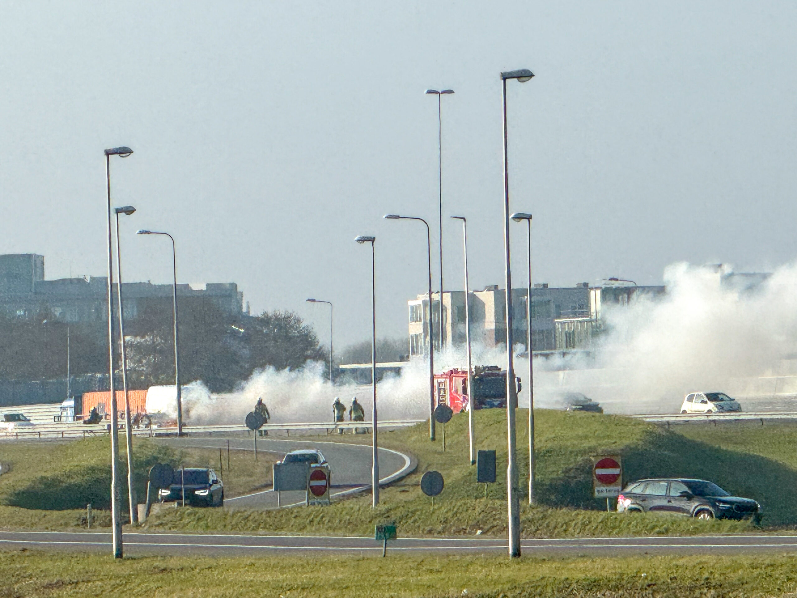 In de omgeving waren er flinke zwarte rookwolken te zien en het ongeval zorgde voor een flinke file. De brandweer had het vuur snel onder controle.