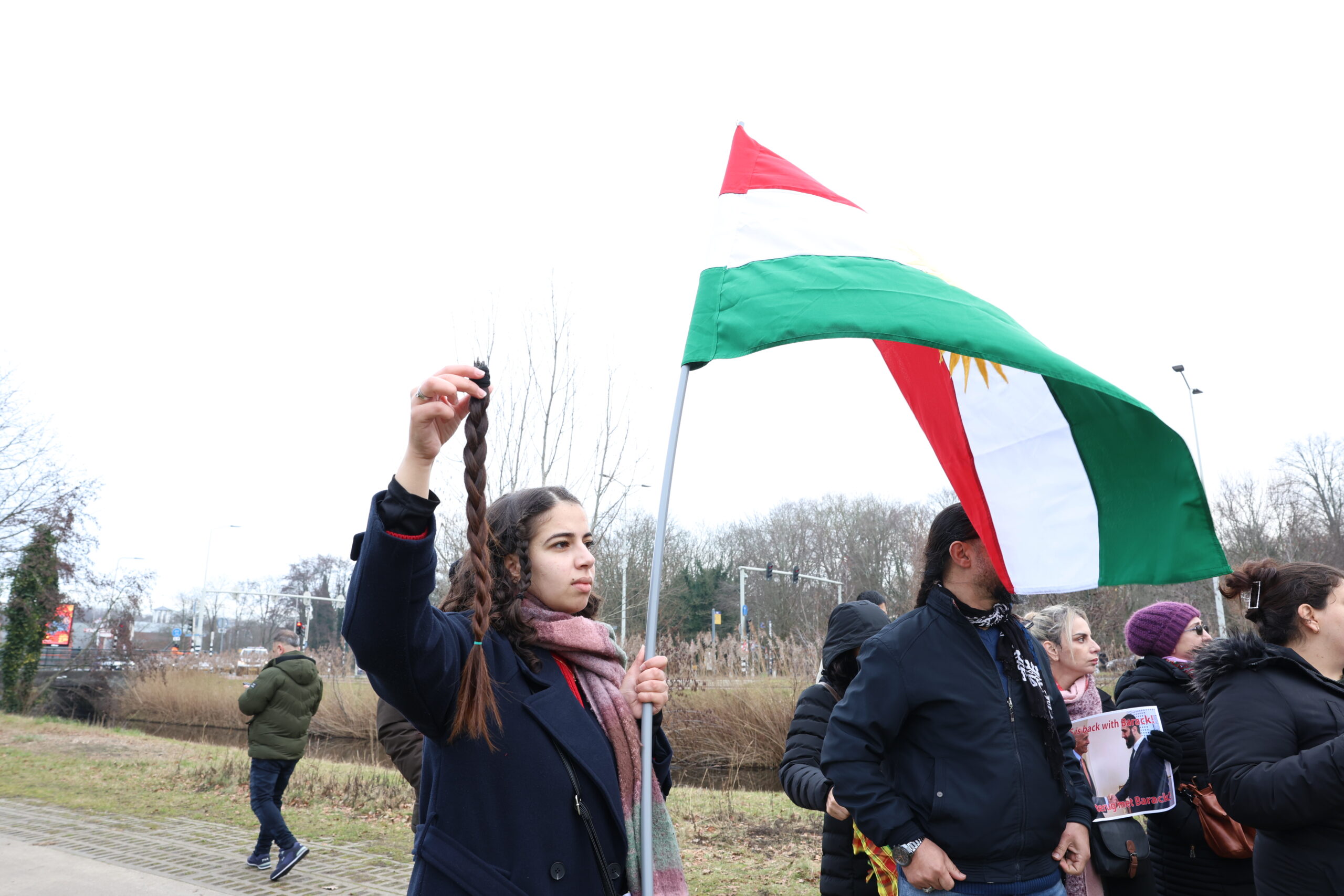 Ongeveer honderd demonstranten kwamen op het protest af. De actie verliep volgens de politie zonder incidenten. Veel vrouwen maakten vlechten in elkaars haar. Een enkeling knipte deze af. De handeling zou binnen de Koerdische gemeenschap symbool staan voor protest en verzet.