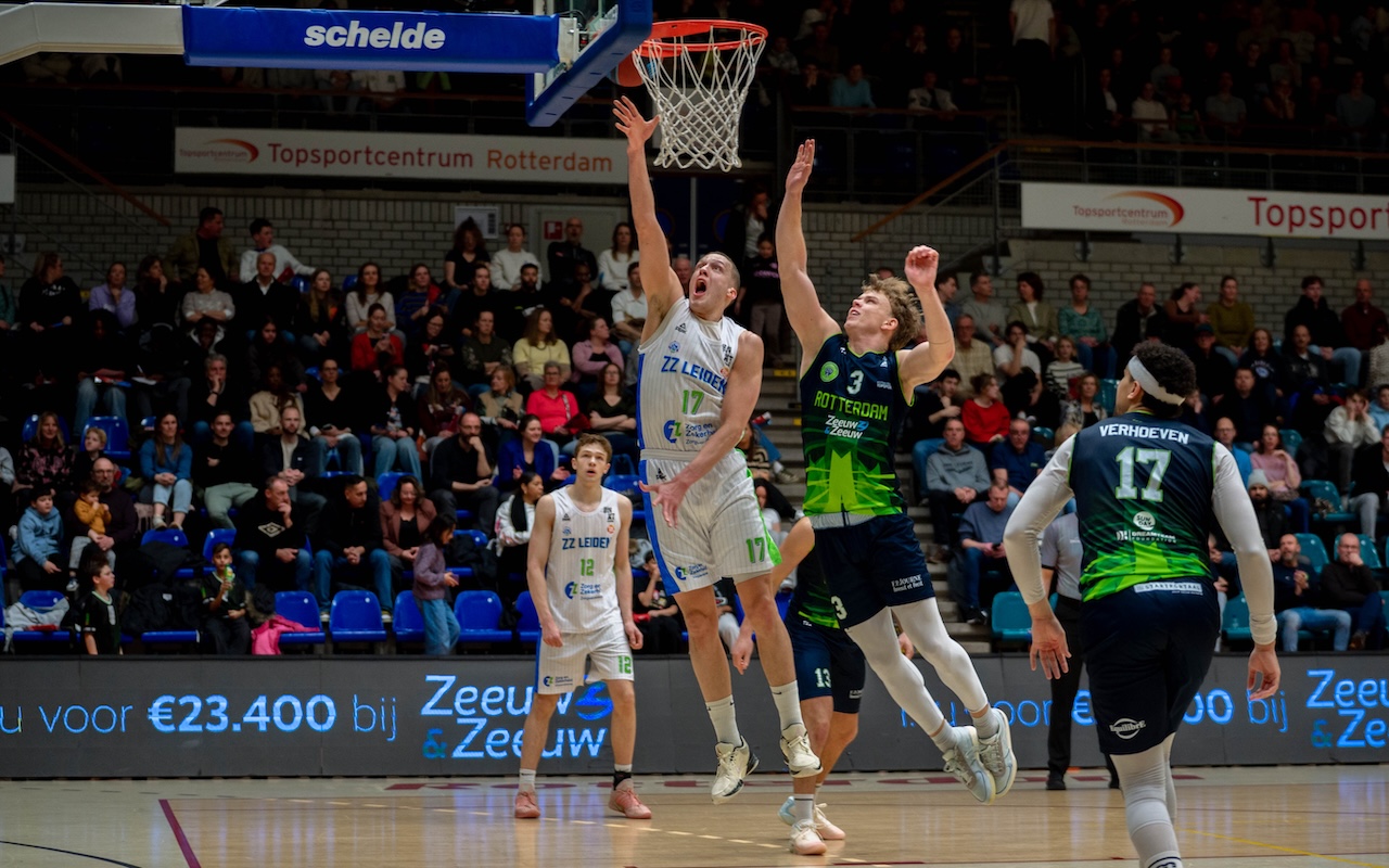 De wedstrijd bleef tot het einde spannend. In het vierde kwart nam ZZ Leiden afstand, maar Rotterdam kwam in de slotfase nog terug tot 73-75. Volgende week speelt ZZ Leiden thuis tegen PrismaWorx BAL, hopelijk met een bredere selectie.