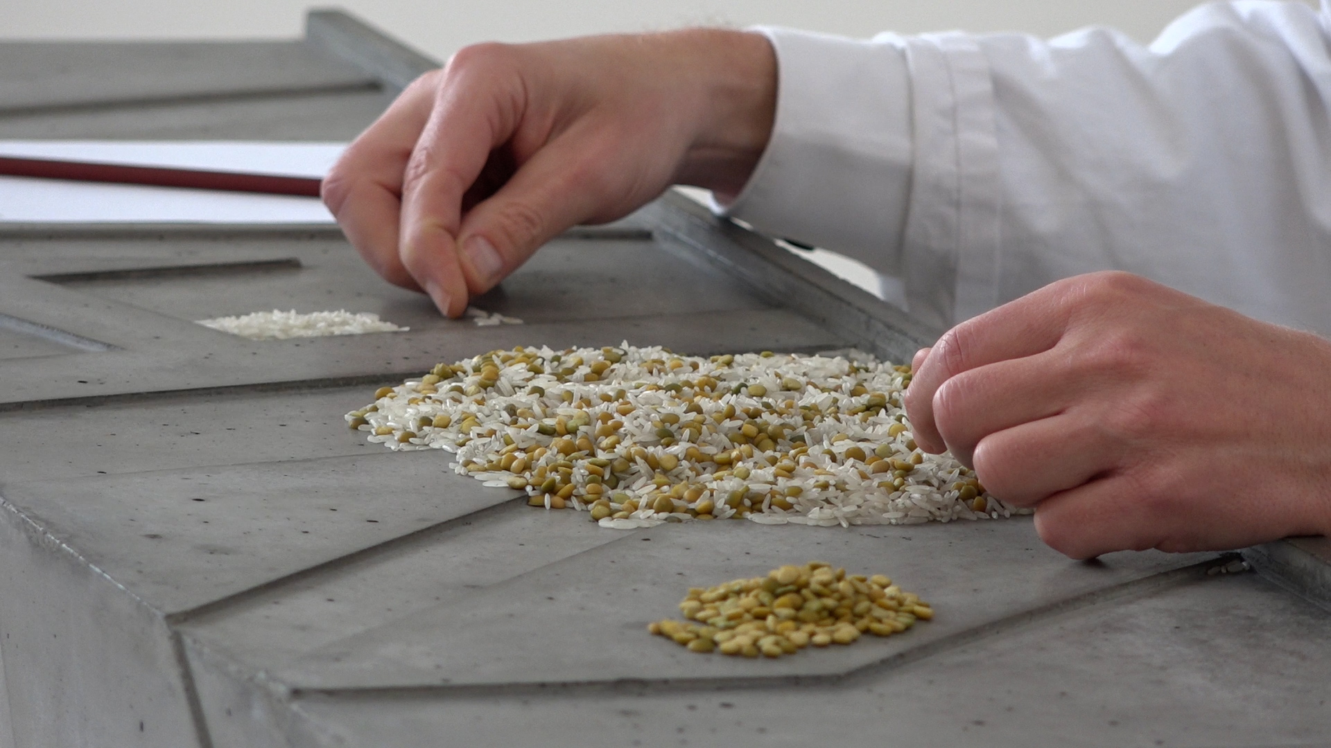 De eindstand van de burgemeester na een uur lang tellen: 570 linzen en ongeveer net zo veel rijstkorrels.