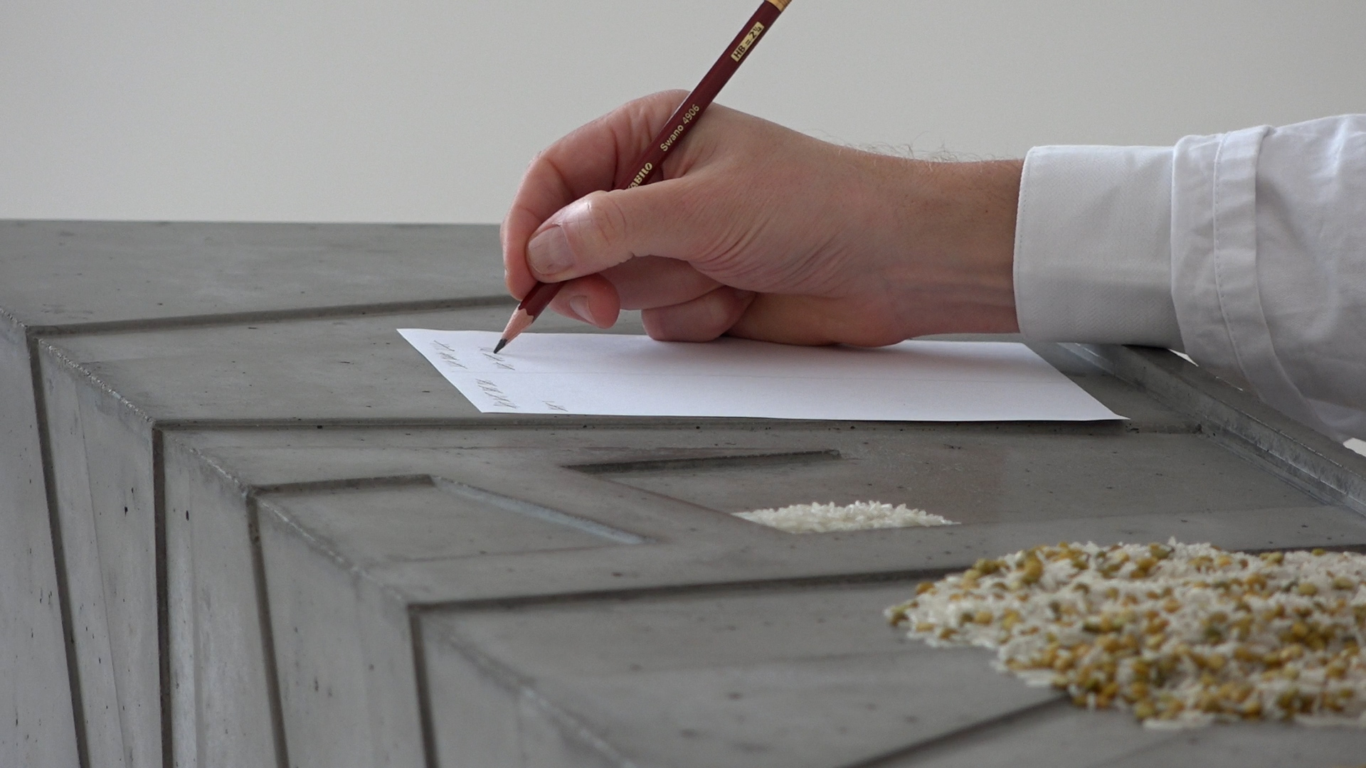 ‘Counting the rice’ maakt de bezoeker zelf onderdeel van de tentoonstelling. Bezoekers worden uitgenodigd om een uur lang rijstkorrels en linzen te tellen. “Het is een oefening in stilte, midden in het museum en omringd door anderen, waarbij je volledig op jezelf wordt teruggeworpen”, omschrijft het museum.
