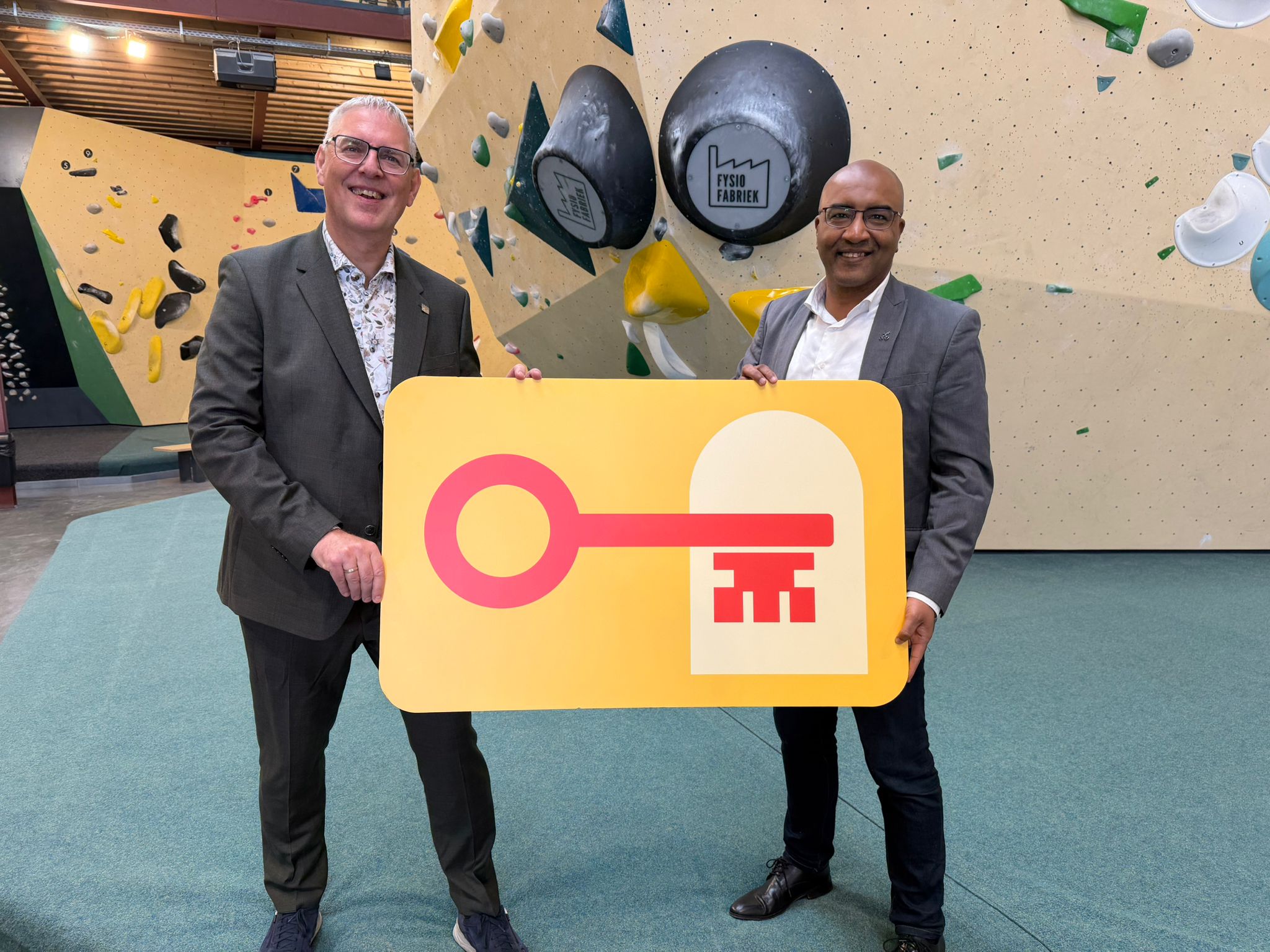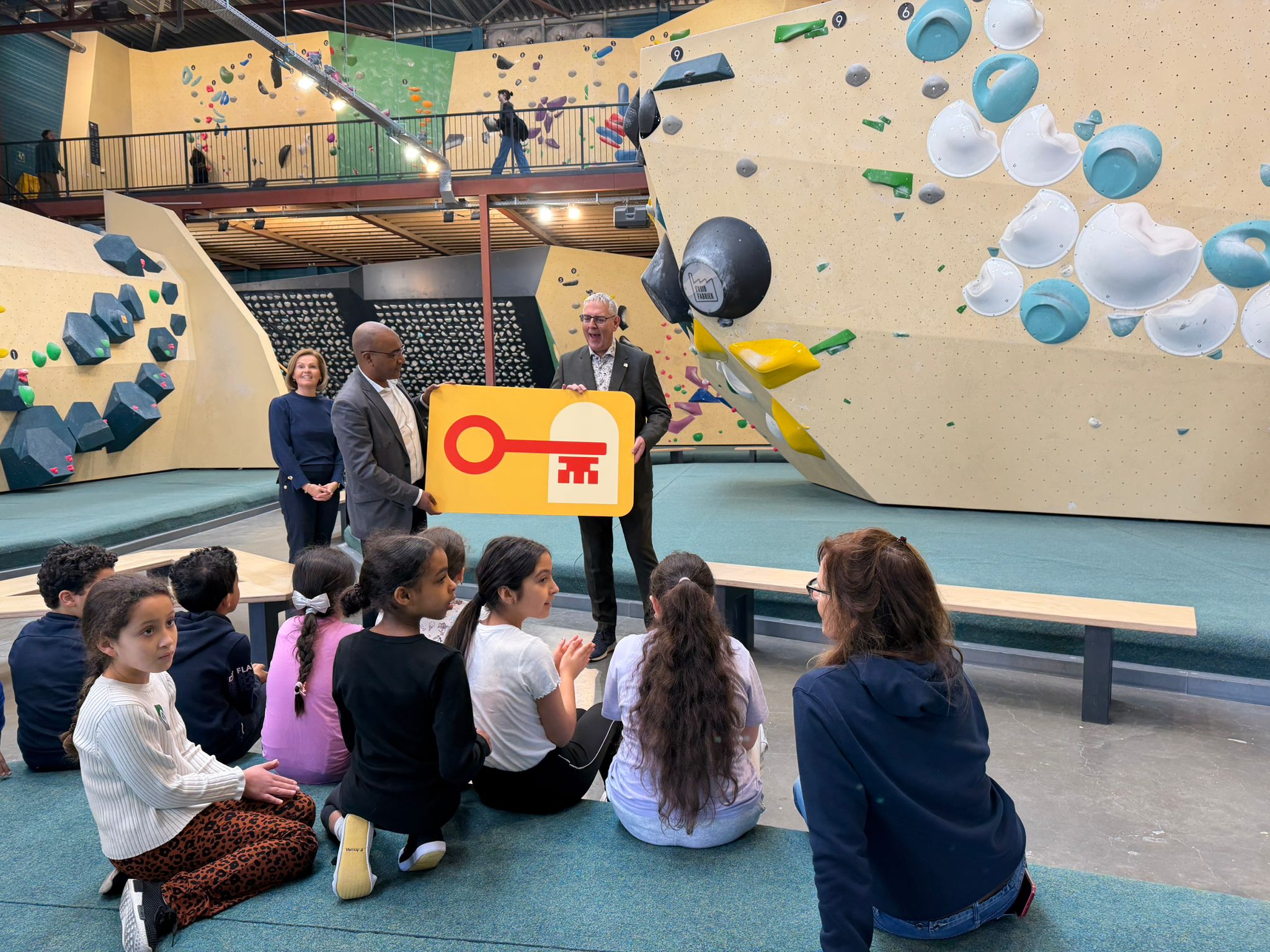 In de Leidse boulderhal Krachtstof vond woensdagmiddag het officiële lanceringsmoment plaats van de Sleutelpas. Groep 5 van Brede School Merenwijk was uitgenodigd voor een ludieke boulderactiviteit. De kinderen werden daarbij aangemoedigd door wethouders Abdelhaq Jermoumi uit Leiden en Herman Romeijn uit Leiderdorp.