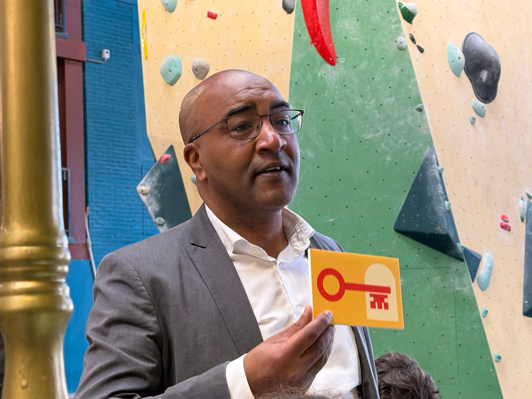 De lancering van de Sleutelpas vond woensdagmiddag plaats in de Leidse boulderhal Krachtstof. Groep 5 van Brede School Merenwijk deed mee aan een boulderactiviteit om te vieren dat de pas er nu echt is. De kinderen gingen klimmend en klauterend op zoek naar verstopte passen. Voor iedereen die een pas had gevonden, schepte de ijscoman een speciaal voor de lancering gemaakte Sleutelpas-ijssmaak. Iedereen die geen pas vond, kon uiteraard óók een ijsje halen.