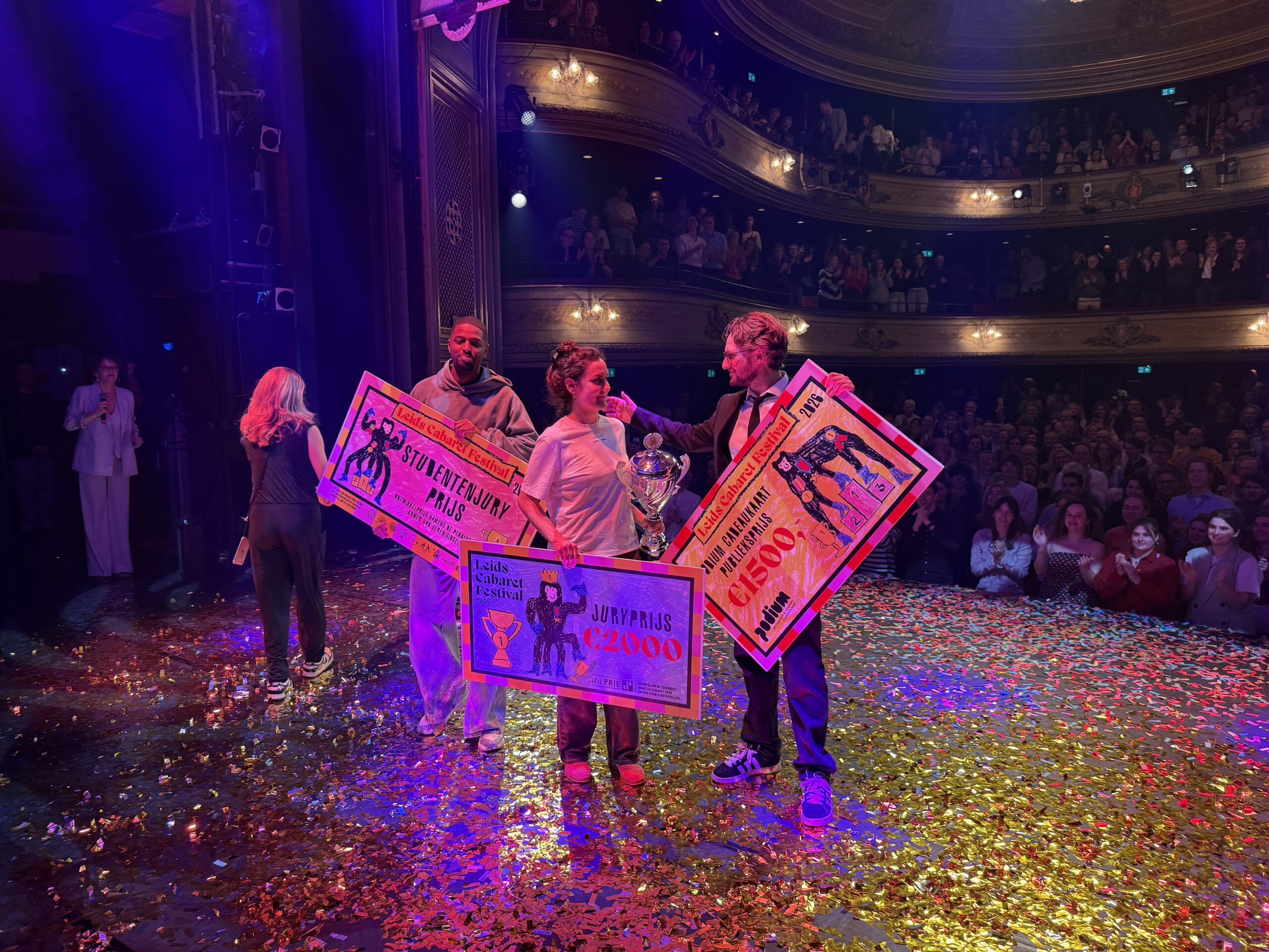 Tijdens de finale van het Leids Cabaret Festival streden zaterdagavond drie finalisten om een prijzen van de vakjury, het publiek en de studentenjury. Levy Geernaert, Meeuw Roovers en Alina Sharipova stonden op het toneel. Omdat ze de finale haalden mogen ze sowieso alle drie op tournee langs veertig theaters in Nederland. De vakjury koost uiteindelijk voor Sharipova. Het publiek was het meest weg van Roovers en de studenten, die mochten kiezen uit alle deelnemers van deze editie, gingen voor Joël Gideon. Hij viel in de halve finale af, maar was volgens de studenten toch echt de beste.