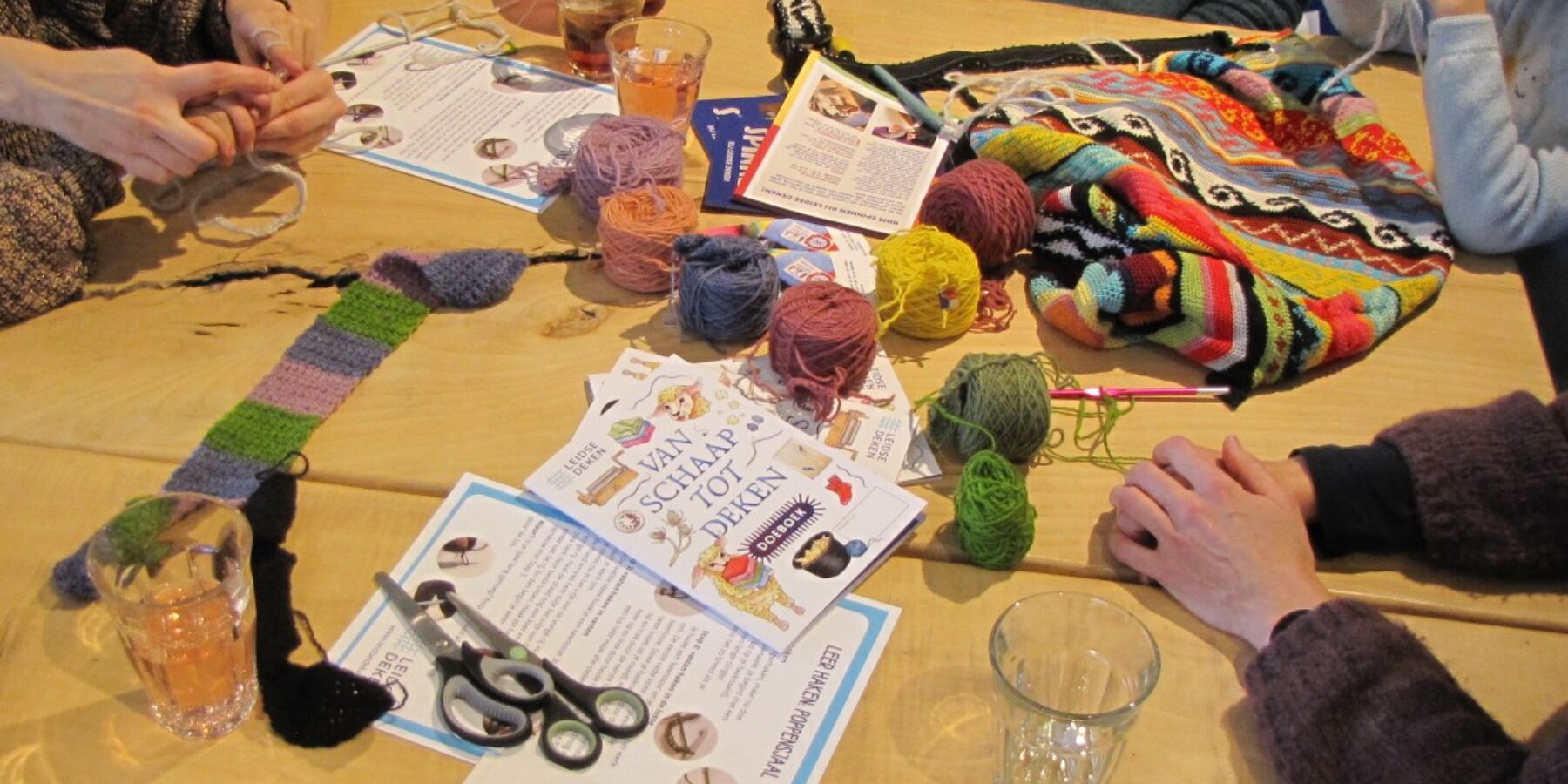 Leuk voor kinderen maar zeker ook voor volwassenen was de Workshop Poppensjaals breien, door Leidse Deken.