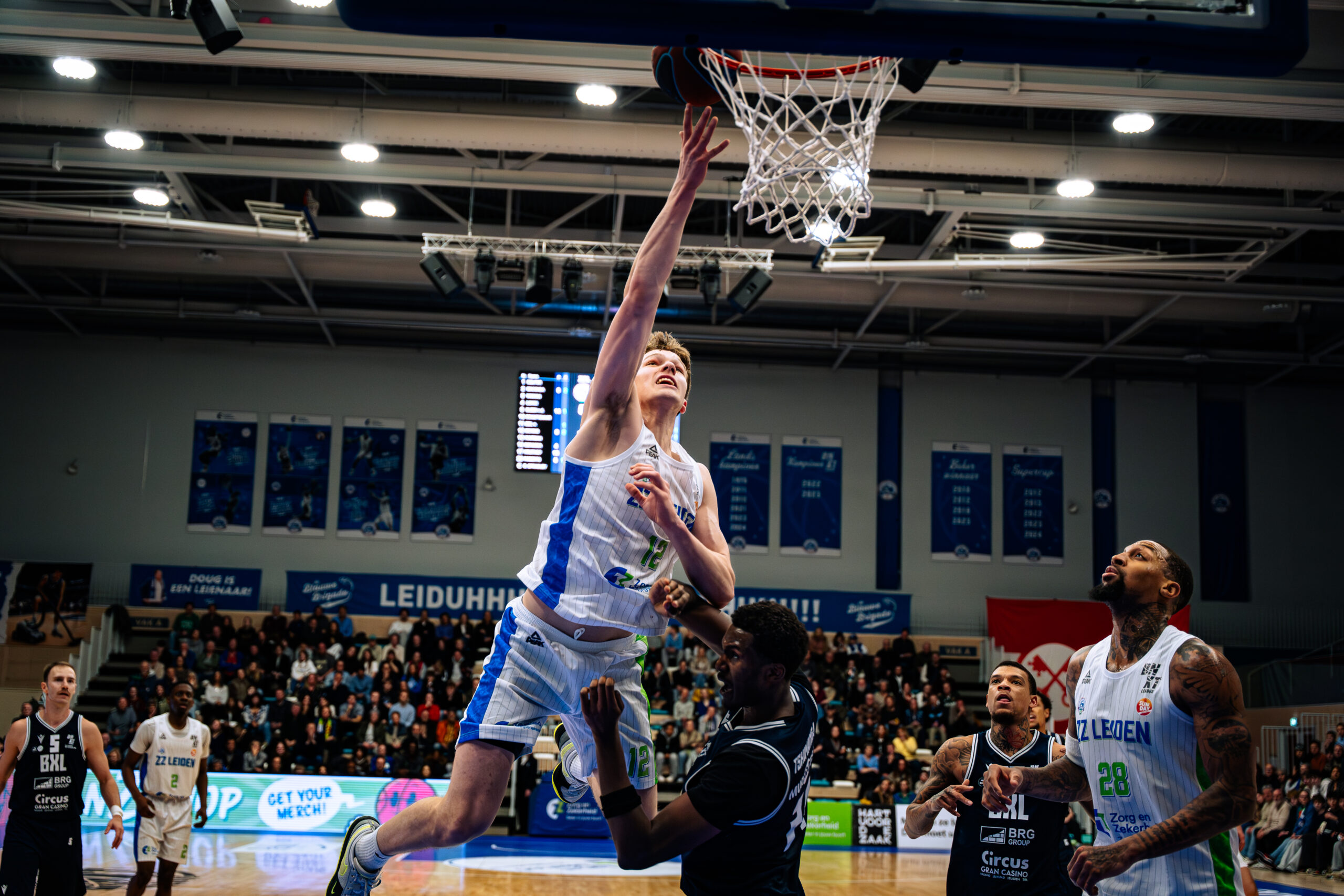Het ‘geblesseerde’ eredivisie team van ZZ Leiden Basketball heeft woensdagavond thuis toch weten te winnen van Brussels Basketball. Het team uit Leiden moest opnieuw spelen zonder Sam Huurman, Tyreek Scott-Grayson en Javian McCollum, die met blessures kampen. Toch werd het 102-96 in het voordeel van Leiden.