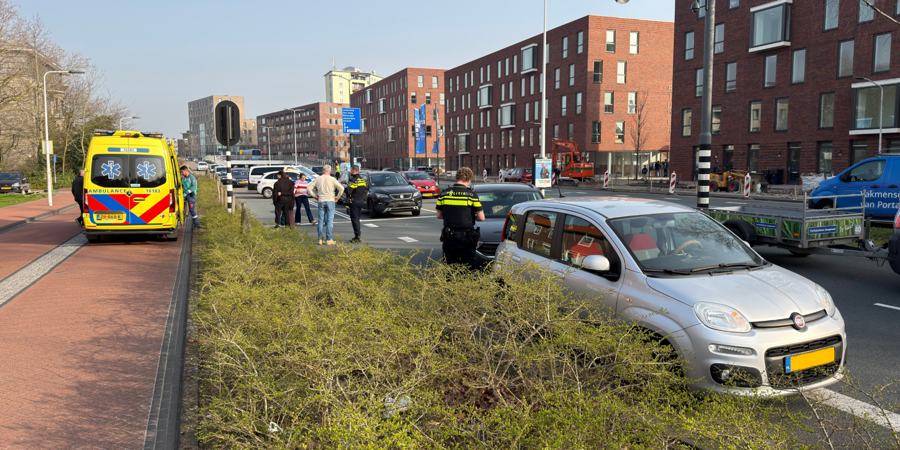 Op de Willem de Zwijgerlaan in Leiden zijn maandagmiddag vier personenauto’s op elkaar gebotst. Het ongeluk gebeurde ter hoogte van Topaz Overrhyn.
