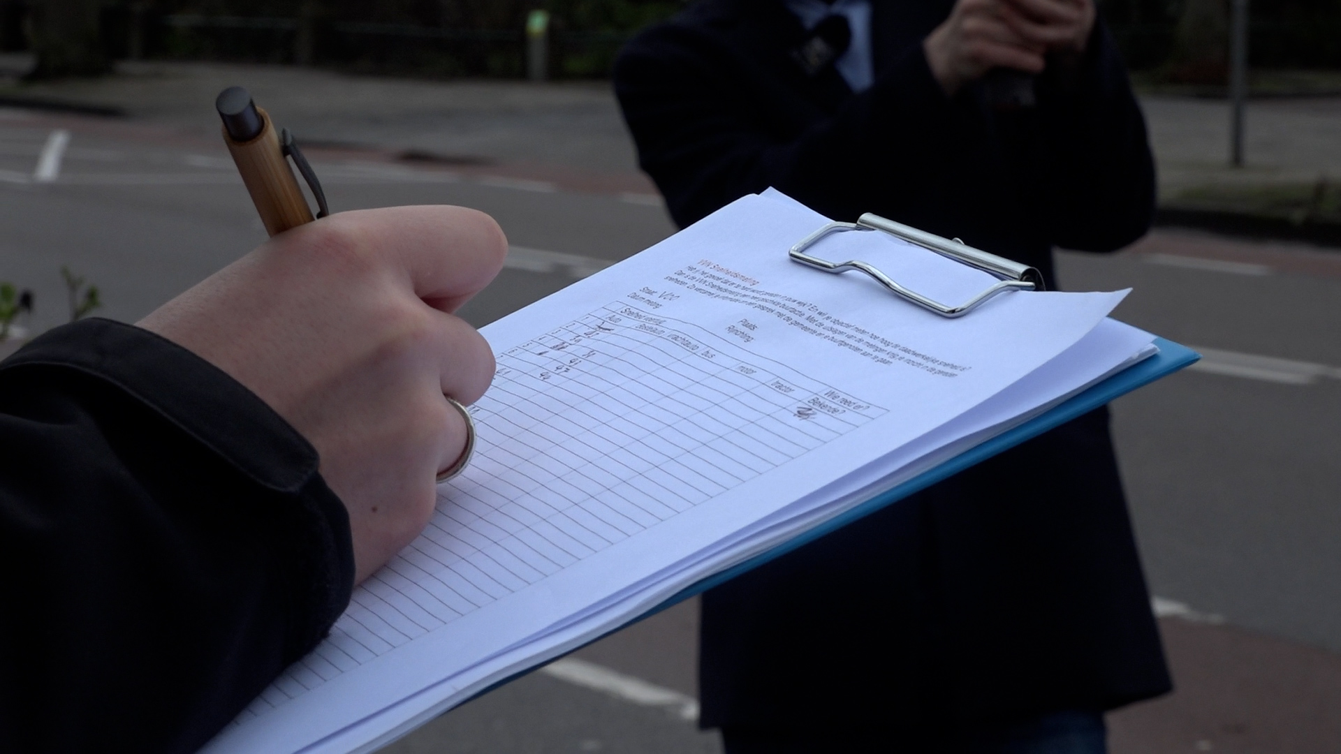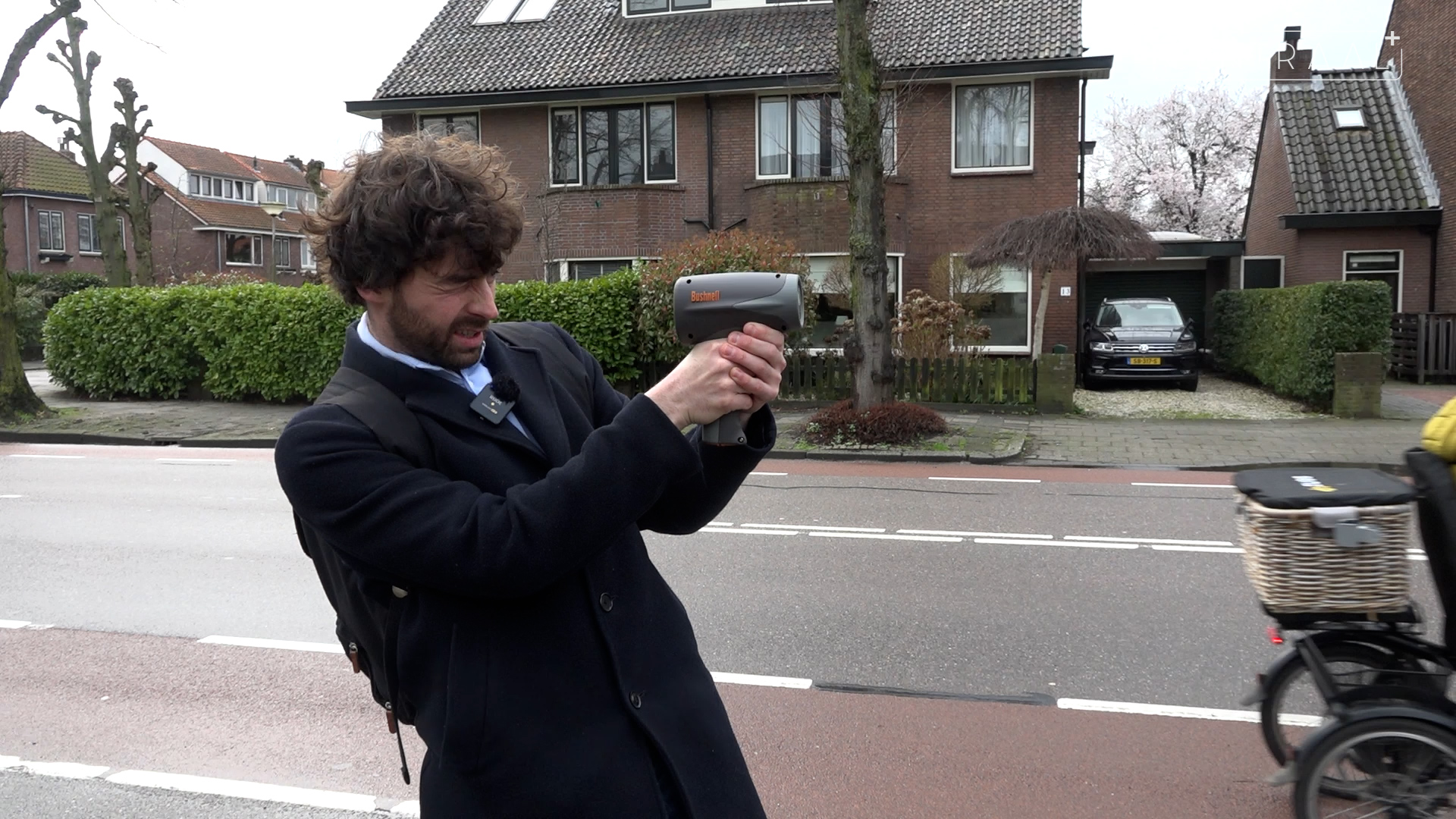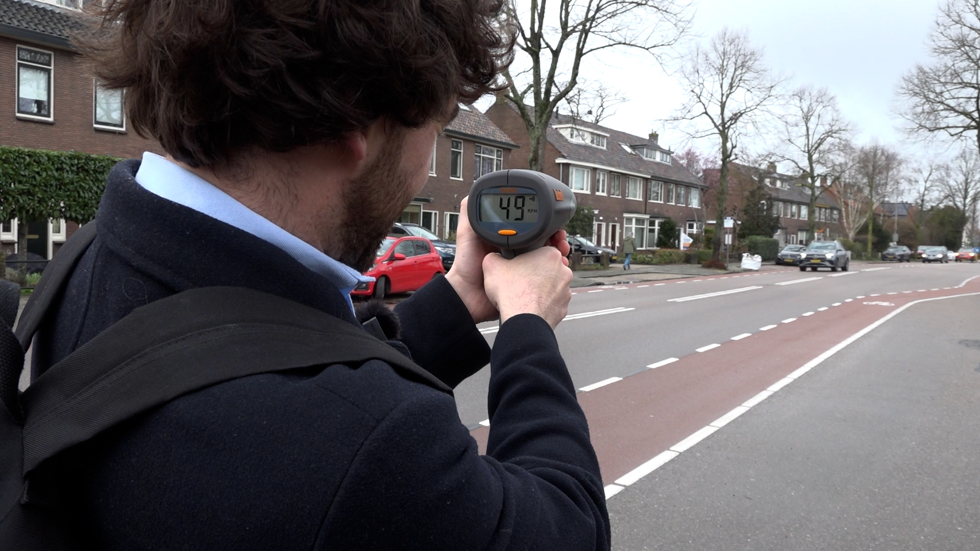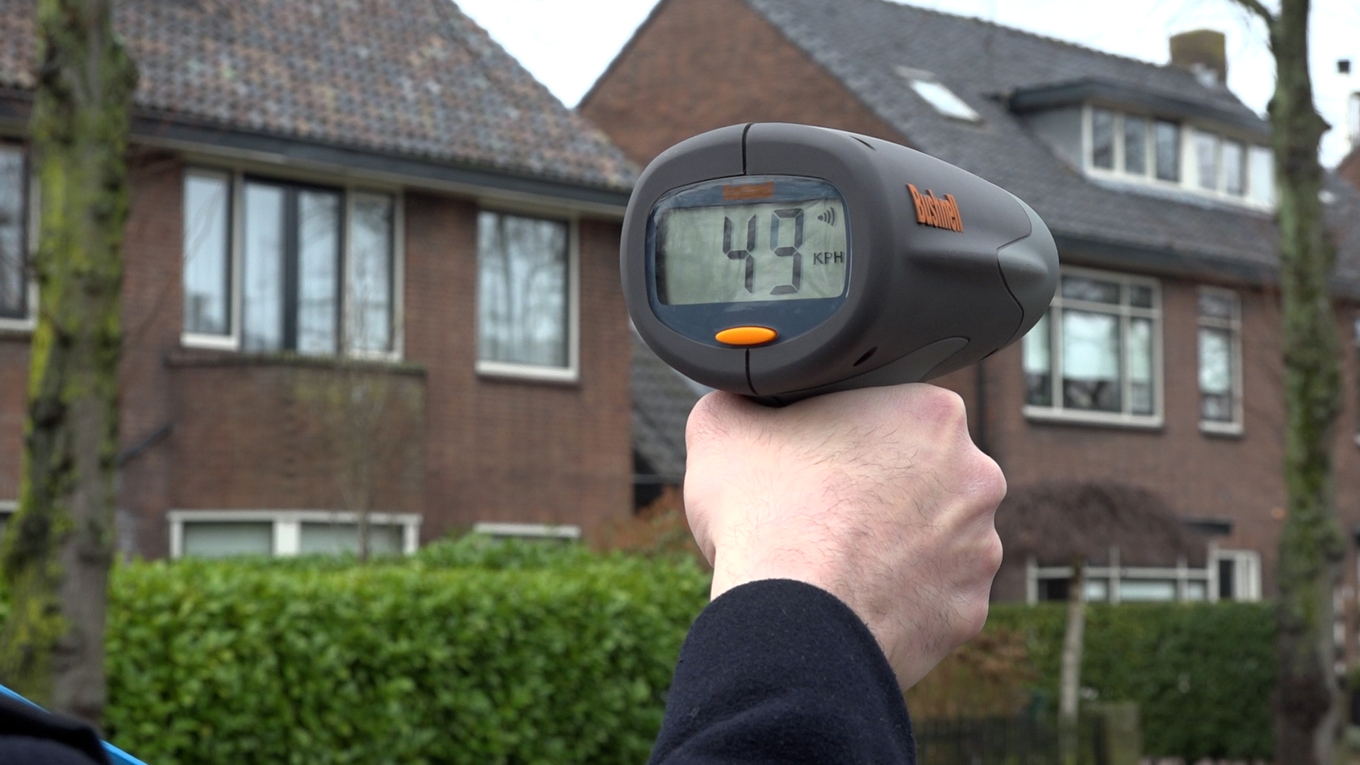 Voor de metingen gebruikte Overduin een snelheidsmeter die hij via Veilig Verkeer Nederland kon lenen. De laser meet de snelheid van passerende voertuigen. “Er wordt hard gereden, kunnen we wel veronderstellen,” zegt Overduin na de metingen op de Acacialaan.
