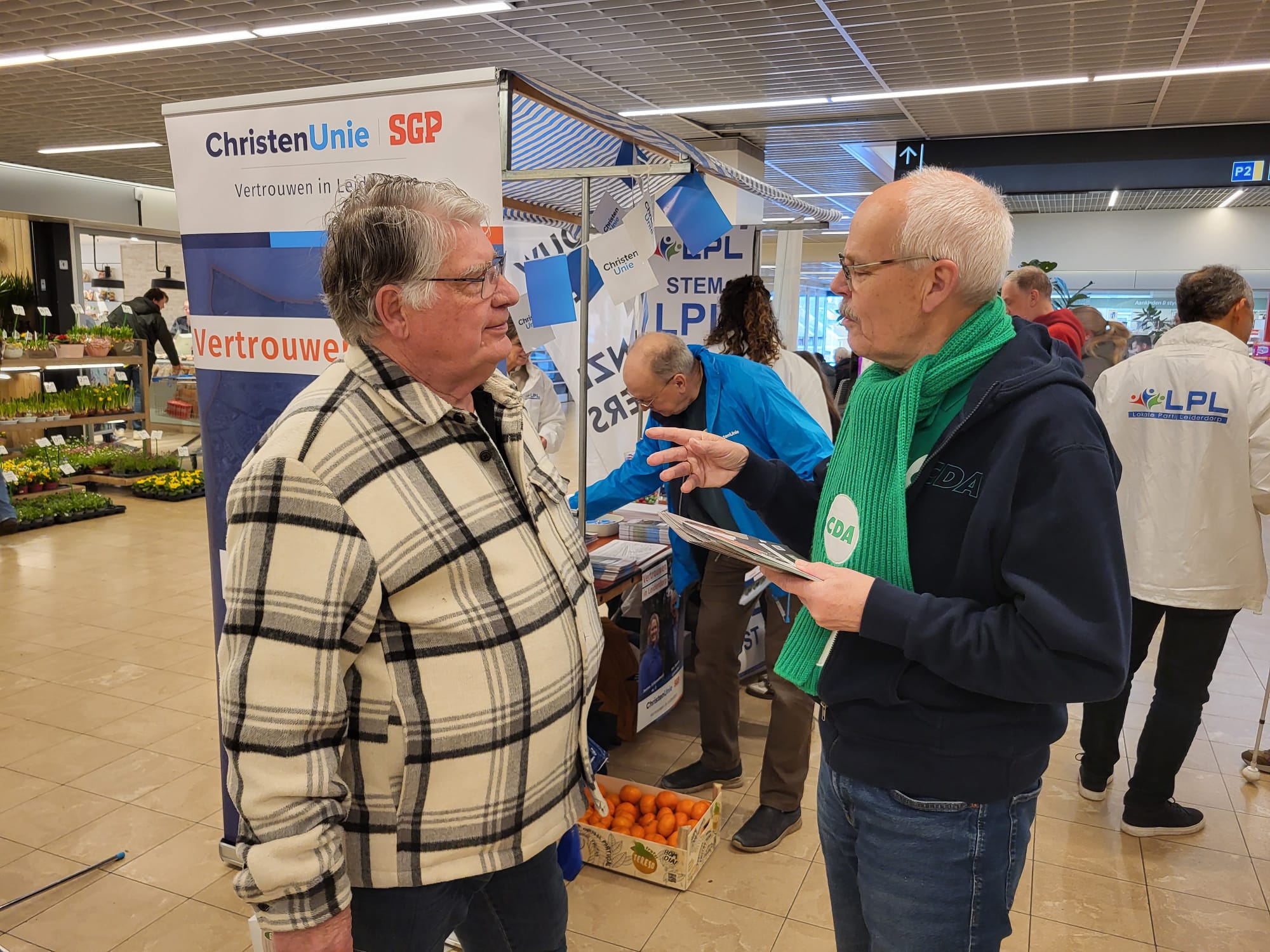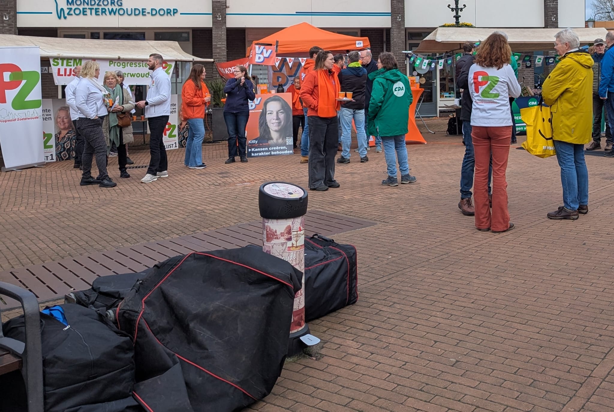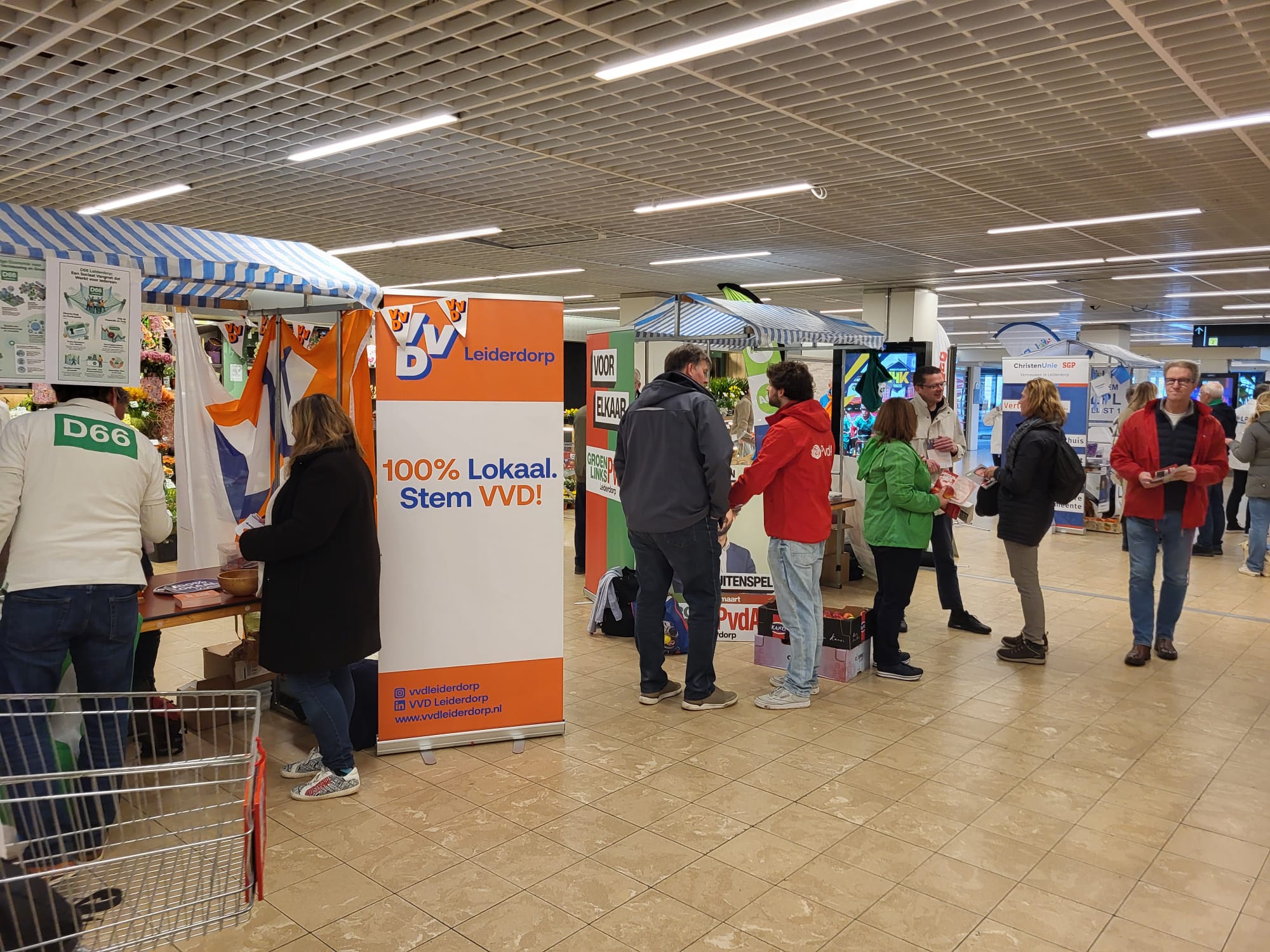 Op de verkiezingsmarkten aan het Treubplein in Voorschoten, Winkelhof in Leiderdorp en het Dorpsplein in Zoeterwoude-Dorp lieten alle partijen die meedoen aan de gemeenteraadsverkiezingen op 18 maart 2026 zich van hun ‘benaderbaarste’ kant zien. Er was tijd om met iedereen in gesprek te gaan. En ook de inwendige stemmer werd niet vergeten. Hapjes en drankjes waren goed vertegenwoordigd.