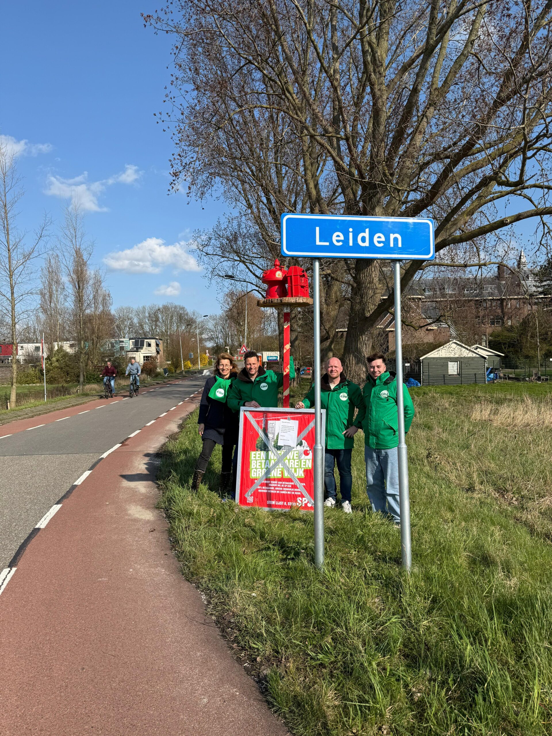 De Zoeterwoudse partij reageert verbaasd op het idee van de ‘grote buur’ om over de grens te gaan bouwen. “Deze actie van de SP Leiden is wel heel raar. Hun bord neerzetten in ons dorp en het vervolgens een Leidse wijk noemen, een misplaatste verkiezingsstunt. Als goede buren ga je zo niet met elkaar om. De basis van regionale samenwerking is juist elkaar informeren en afstemming zoeken. Als CDA Zoeterwoude hebben we daarom het bord netjes teruggebracht naar Leids grondgebied aan de Vrouwenweg en daar weer neergezet”, zegt fractievoorzitter Matthijs van der Hoeven.