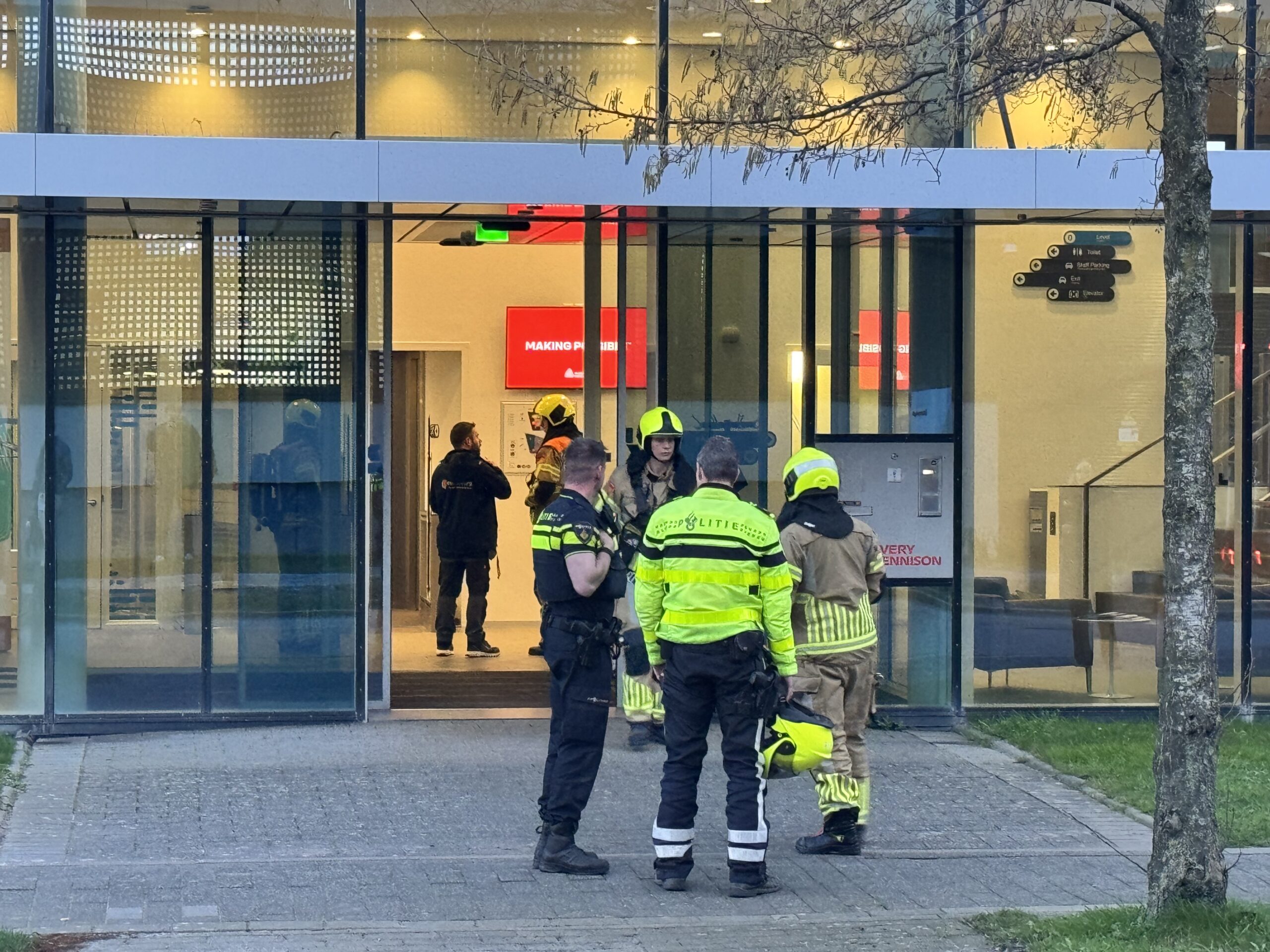 De hulpdiensten ontruimden het pand. Vijf brandweerauto’s en politie kwamen op de melding af. Binnen een uur was de brand geblust. Na ventilatie mochten de aanwezige werknemers weer naar binnen.