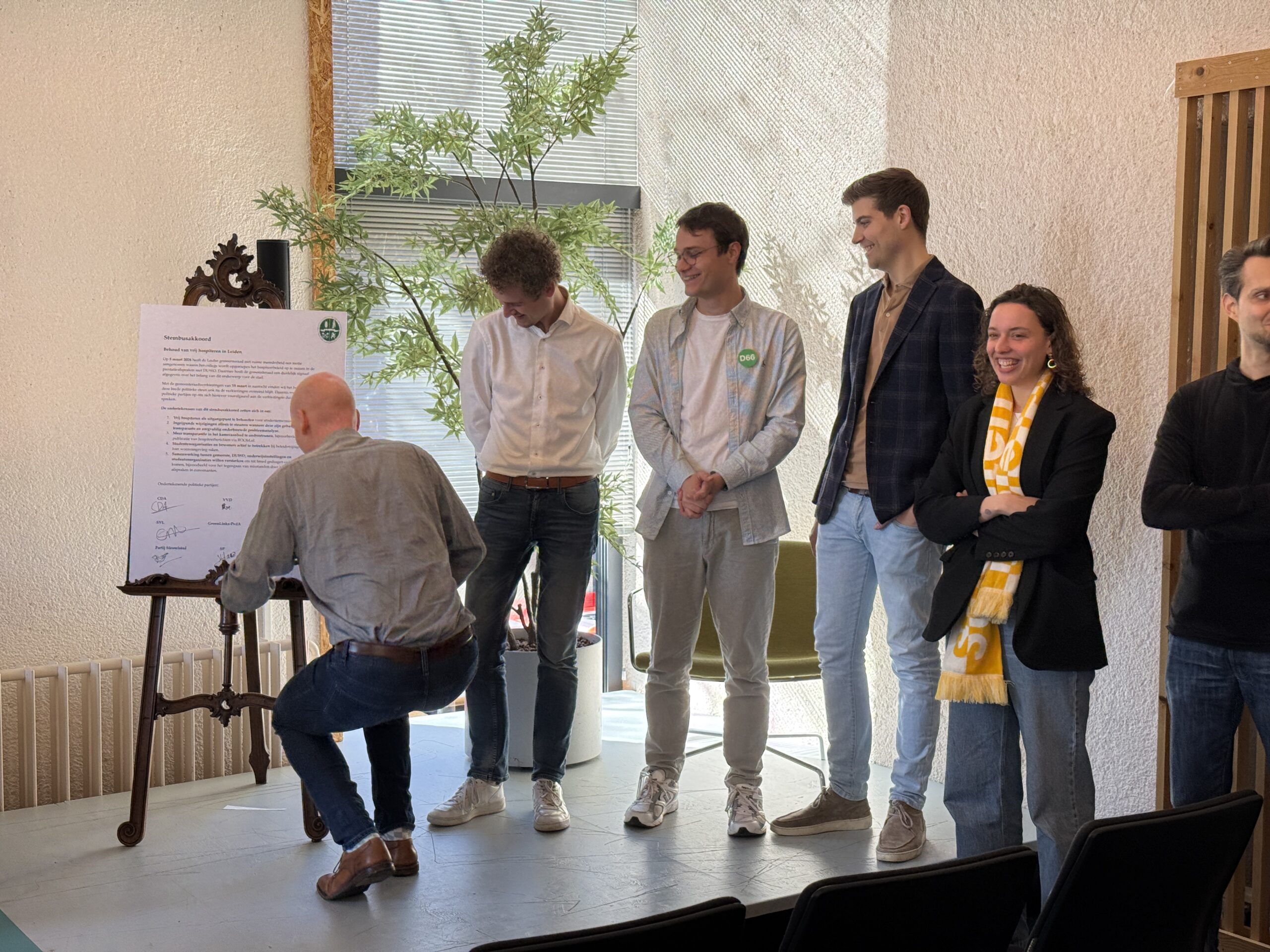 Voor studenten draait het akkoord vooral om duidelijkheid. De lijsttrekker van Studenten voor Leiden, Claire van Megen, ziet hoe groot de zorgen zijn bij studenten: “Ze voelen de verkiezingen in hun nek hijgen en denken: ‘Hé, dit is voor mij zo belangrijk, gaat het na de verkiezingen blijven staan?’” Volgens Van Megen geeft het akkoord studenten vertrouwen dat de gemeenteraad zich ook na de verkiezingen achter vrij hospiteren blijft scharen. Tegelijkertijd is niet iedere partij zonder meer aan boord: sommige fracties steunen het idee inhoudelijk, maar zetten geen handtekening.