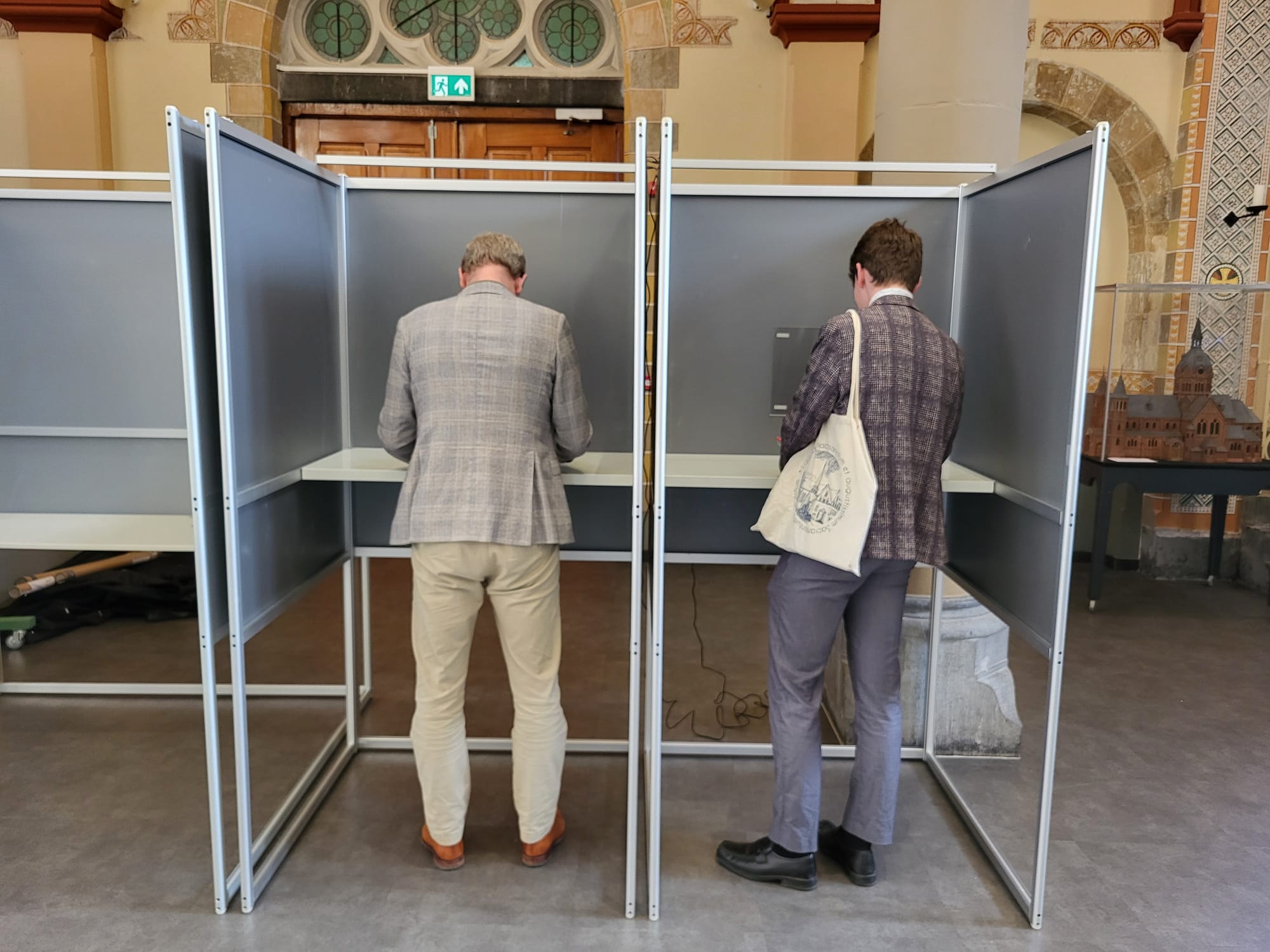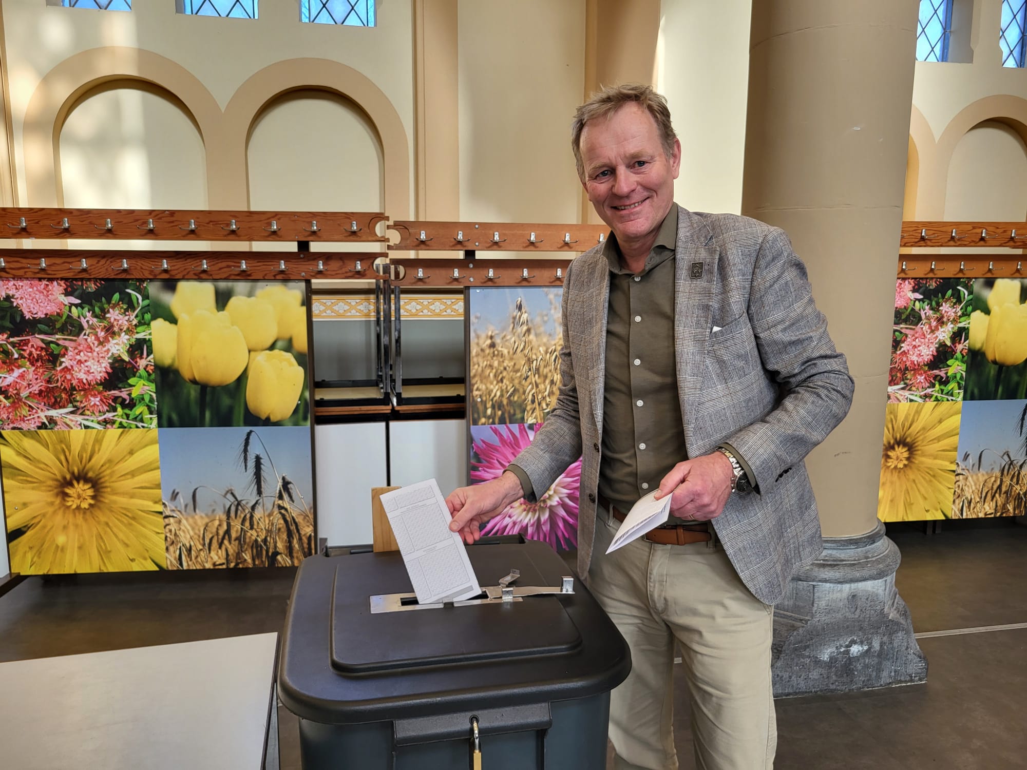 Burgemeester Fred van Trigt kwam woensdagmiddag stemmen in de Goede Herderkerk en ging ook kort in gesprek met Iris. “Ik vind het fantastisch dat jonge mensen maatschappelijk betrokken zijn en zich opgeven dit te doen. Ik ben daar heel erg blij mee.