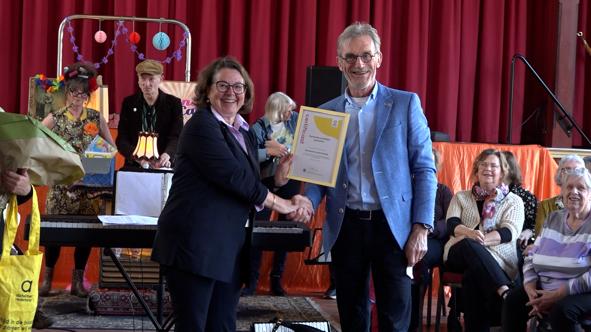 Afgelopen vrijdag ontving de gemeente Zoeterwoude het certificaat Dementievriendelijke Gemeente. Het certificaat werd namens Alzheimer Nederland uitgereikt door Anne de Baat aan wethouder Moniek van Sandick. De uitreiking vond plaats tijdens het Danscafé in het Muziekcentrum Zoeterwoude, een activiteit waar inwoners elkaar ontmoeten en samen dansen, bewegen en genieten van muziek.