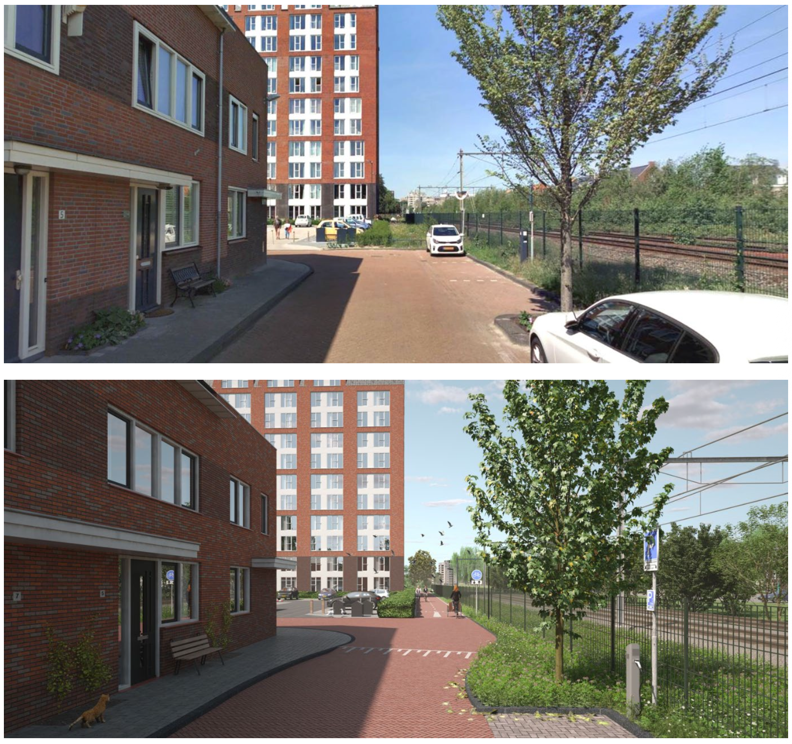De huidige (boven) en nieuwe situatie (onder):