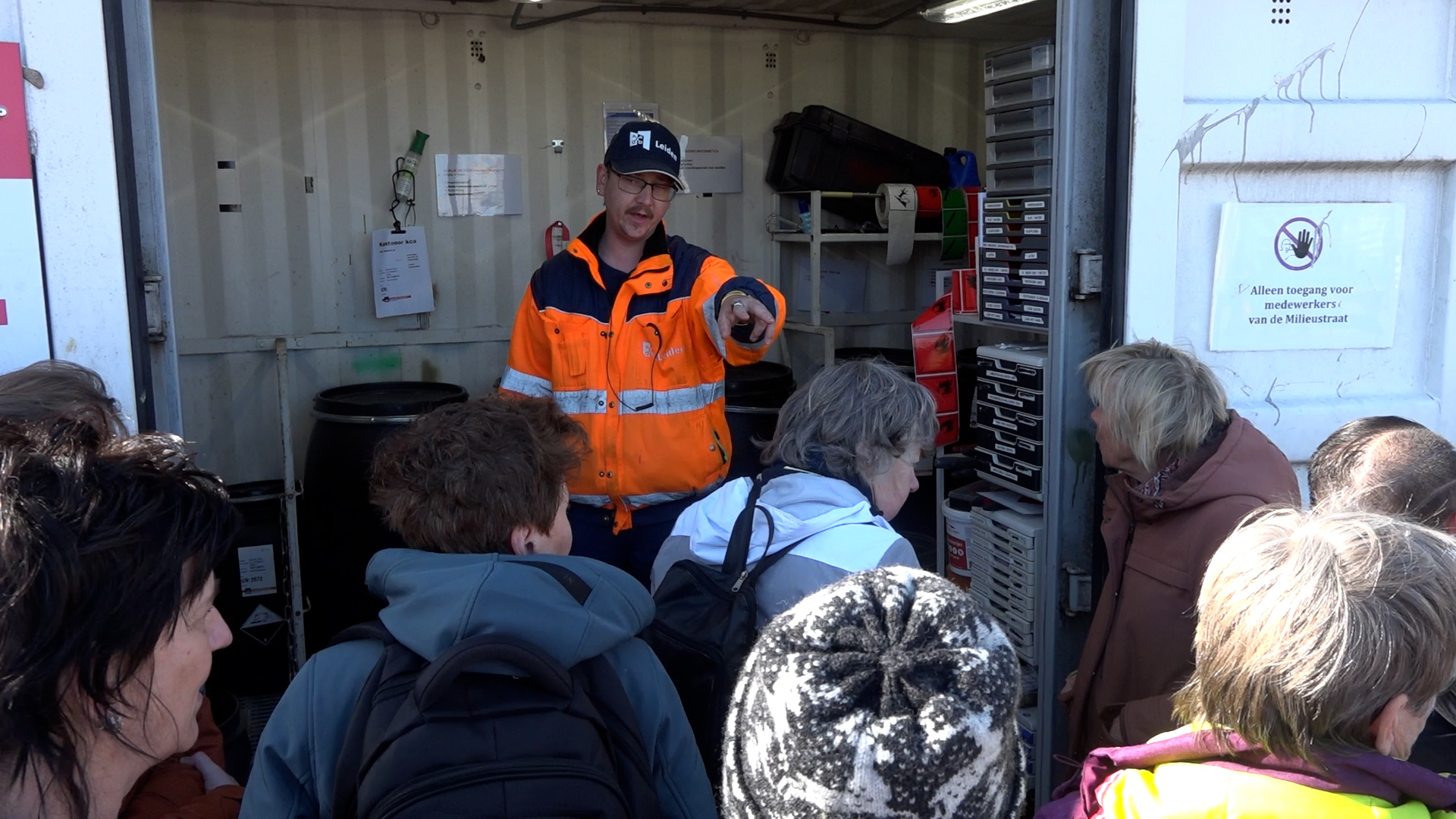 Een groepje geïnteresseerde Leidenaren kreeg donderdagmiddag een rondleiding over de milieustraat in Leiden. De rondleiding was een van de activiteiten van het Zero Waste Festival dat dit jaar voor het eerst werd georganiseerd in Leiden.