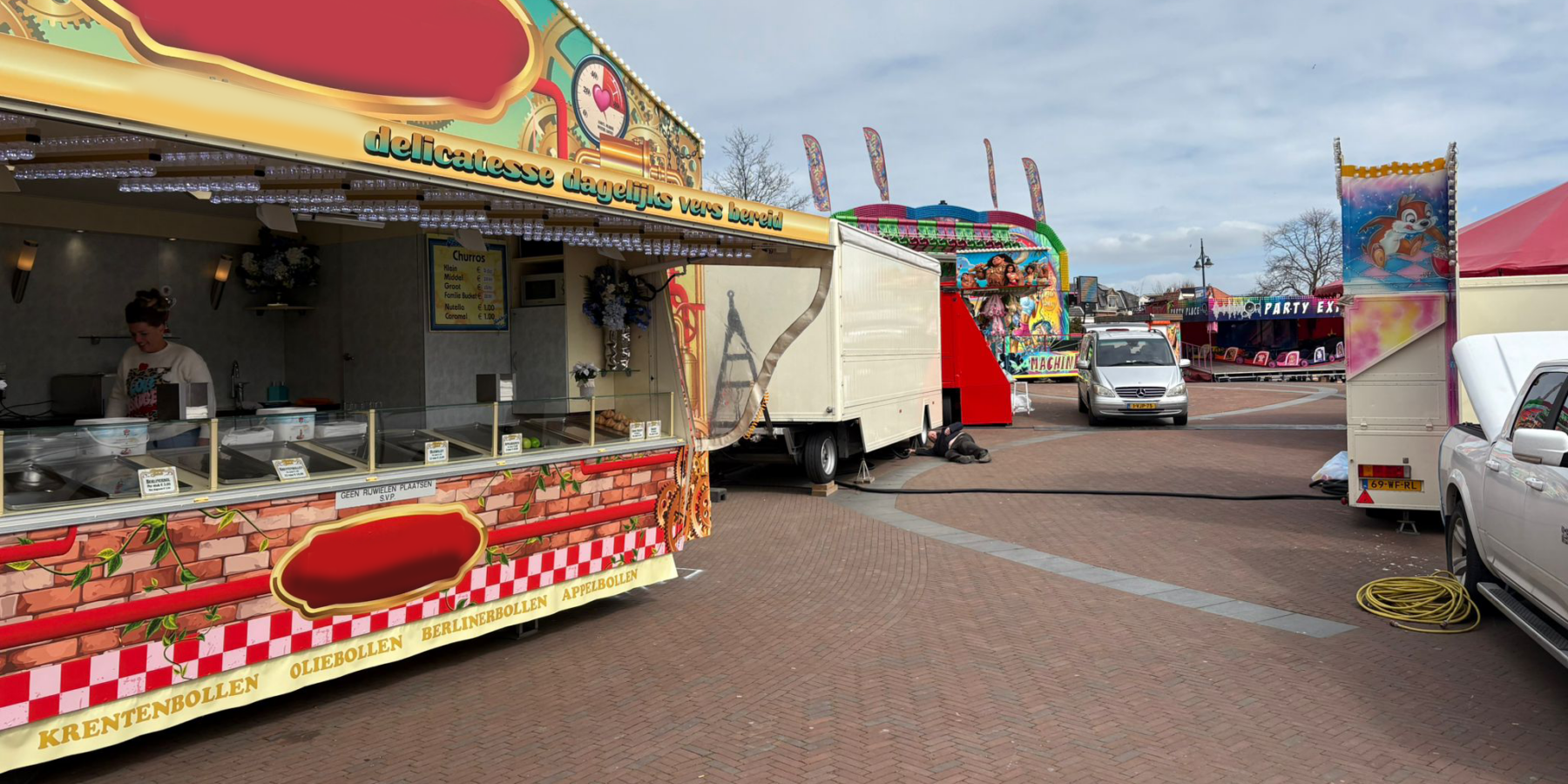 Het kermisseizoen in Leiden staat op het punt van beginnen en op de Lammermarkt wordt inmiddels druk opgebouwd voor de paaskermis. Voor oliebollenverkoopster Miranda Bierens betekent het traditiegetrouw de aftrap van een nieuw seizoen. “We hopen dat het een beetje mooi weer wordt, droog blijft en dan zal het vast wel lekker druk worden,” zegt ze terwijl haar kraam wordt ingericht. De Leidse kermis markeert voor veel exploitanten het begin van maandenlang rondtrekken door het land.