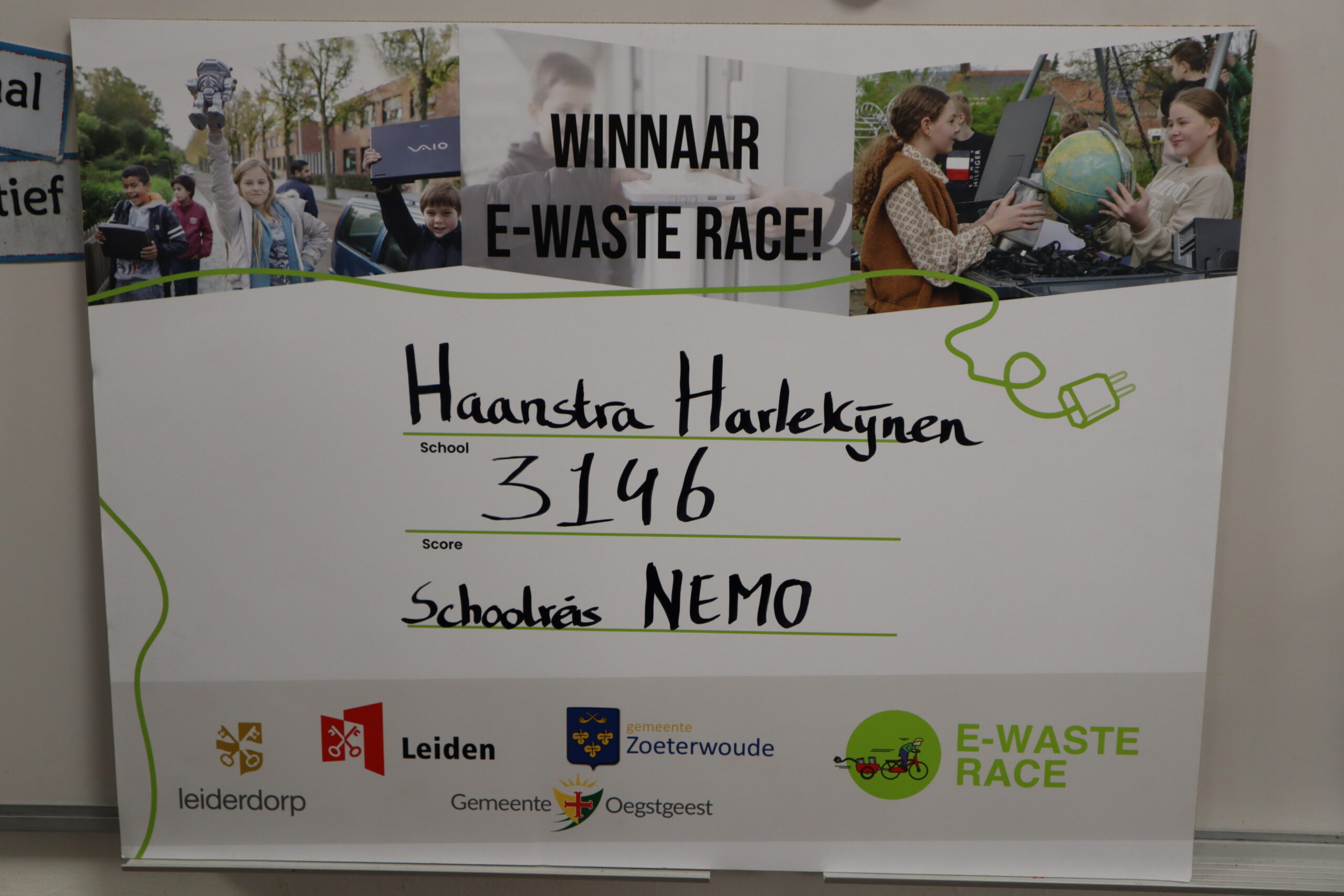 In Leiden hebben leerlingen van de Haanstra School de E-Waste Race, een inzamelwedstrijd voor elektronisch afval, gewonnen. Het winnende team, Team Harlekijn, behaalde 3146 punten en liet de concurrentie ver achter zich.