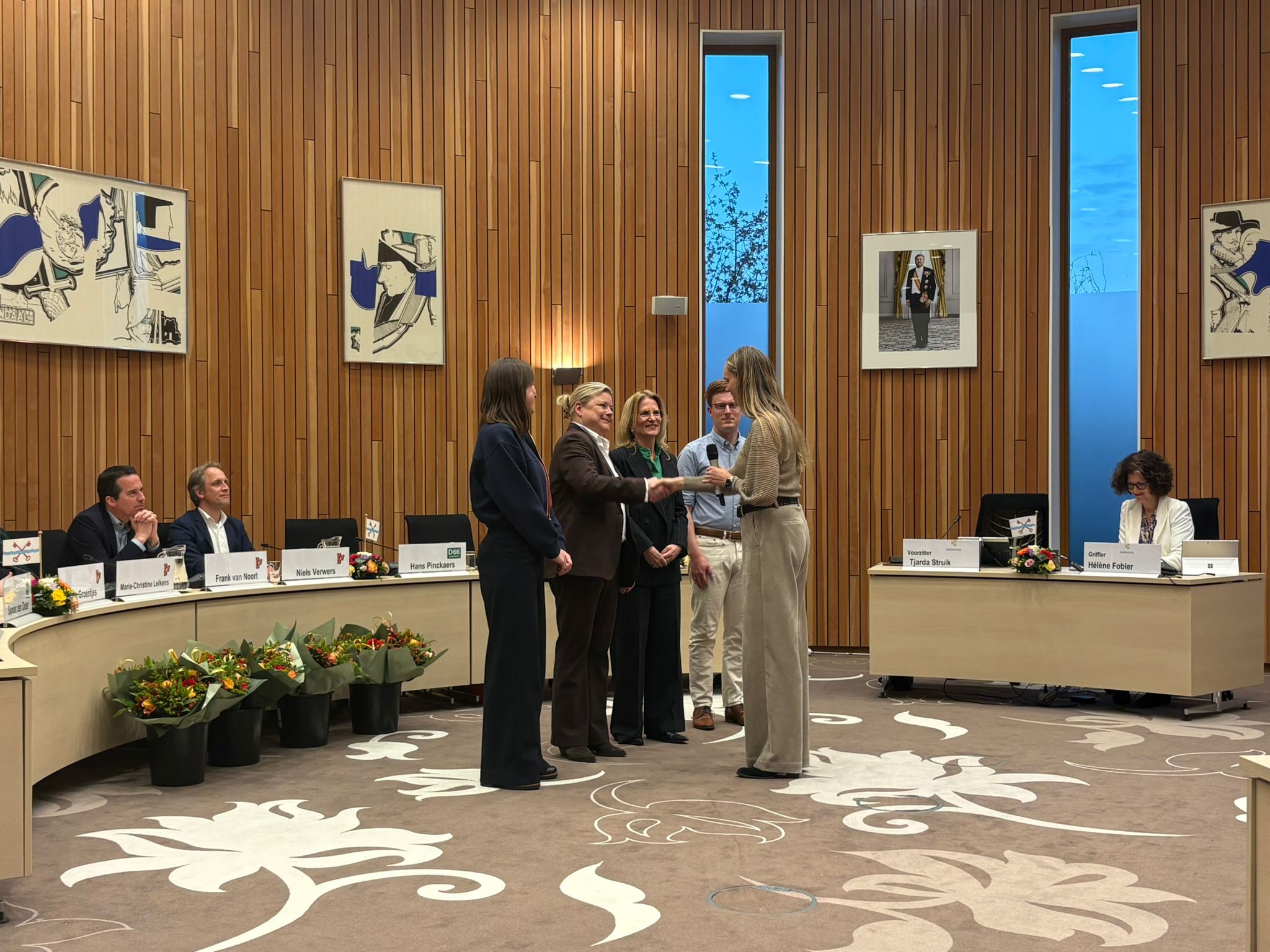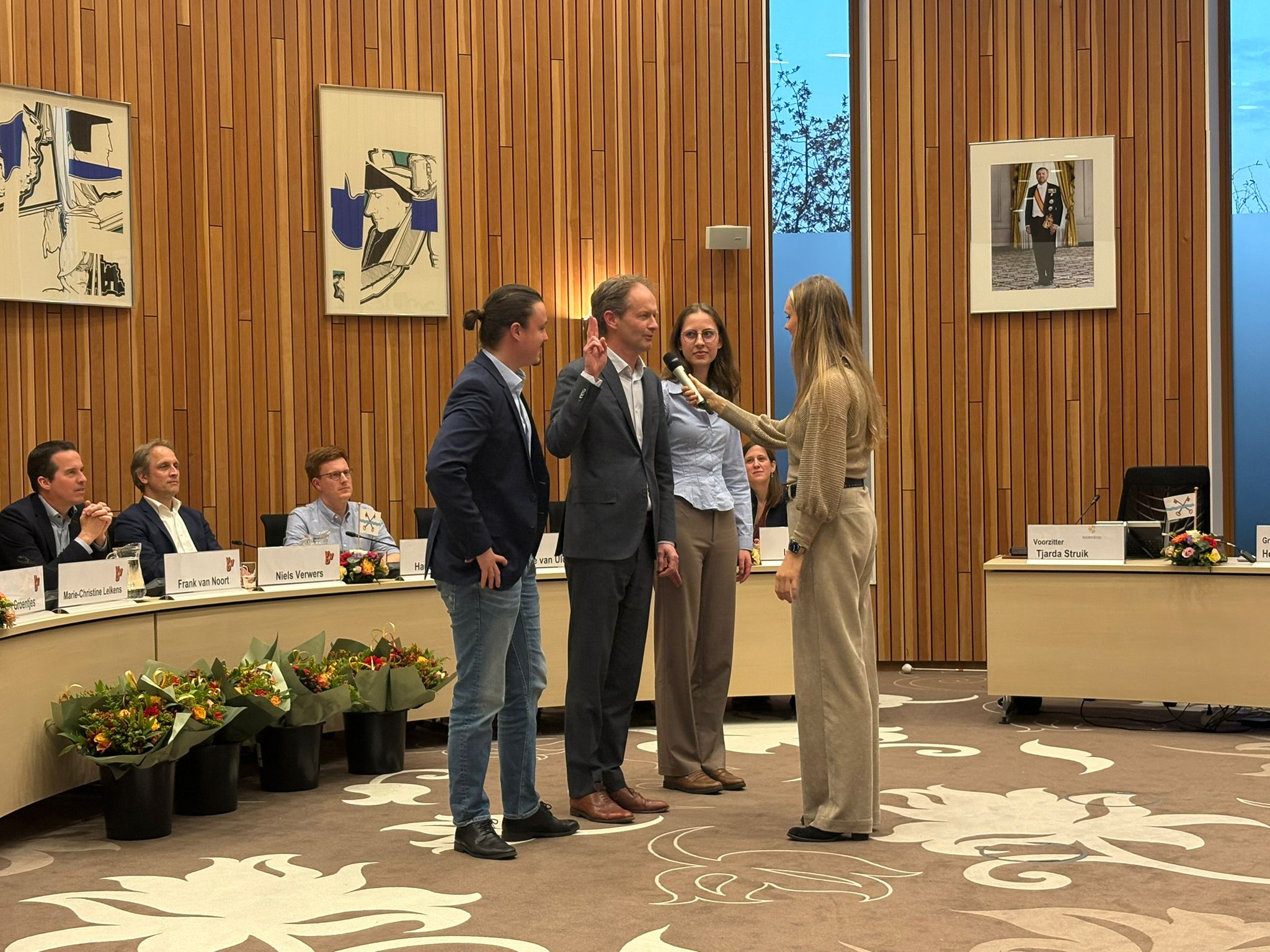 De nieuwe gemeenteraad van Leiderdorp is officieel van start gegaan met de beëdiging van de raadsleden. In een volle raadszaal sprak burgemeester Tjarda Struik van een bijzonder moment. Voor haar was het de eerste keer dat ze de ceremonie mocht leiden, iets wat zichtbaar indruk maakte. “De eerste keer… en ja, ik word helemaal enthousiast,” vertelde ze na afloop. De energie in de zaal werkte aanstekelijk, merkte ze: “Je ziet ook gewoon hoeveel zin de raad erin heeft om ervoor te gaan de komende jaren. Dat is besmettelijk.”